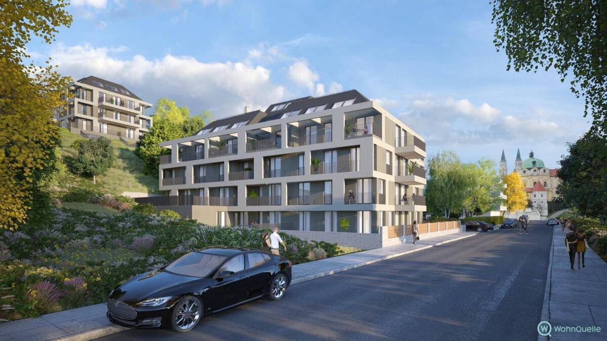 WOHNEN MIT STIFTSBLICK - In Klosterneuburg, Am Renninger 10, nahe dem Stift entsteht unser Neubauprojekt mit 34 hochwertig ausgestatteten Eigentumswohnungen. Die durchdachten Wohnungsgrundrisse variieren von Garconnieren mit einer getrennten Schlafnische (ab ca. 35 m²) bis zu 4 und 5 Zimmerwohnungen (ca. 185 m²). Die Wohnungen verfügen über große Freiflächen (Eigengärten, Balkone und Terrassen) und sind nach Süden, Osten und Westen ausgerichtet. Von den Wohnungen hat man einen direkten Blick auf das historisch bedeutsame Chorherrenstift mit seinen barocken Gärten beziehungsweise die Auwälder und den Bisamberg. Mit einer klaren Architektursprache und den hochwertigen Materialien wird das Projekt seiner herausragenden Lage im historischen Umfeld gerecht.Klosterneuburg hat sich als Stadt mit sehr hoher Lebensqualität bestens etabliert. In unmittelbarer Nähe zu Wien, nur ca. 20 Fahrminuten vom Wiener Stadtzentrum entfernt, ist Klosterneuburg eine Stadt mit hohem Wohn- bzw. Erholungsstandard. Das Wohnprojekt „Am Renninger“ liegt in einer gewachsenen und zentrumsnahen Wohngegend in Klosterneuburg. In unmittelbarer Nähe befinden sich das Stift, zahlreiche Nahversorger, Banken, Ärzte und Einrichtungen des täglichen Bedarfs. Öffentliche Bildungsinstitutionen wie Kindergärten, Volksschulen und Gymnasium sind in wenigen Minuten erreichbar und machen das Wohnprojekt „Am Renninger“ somit zu einem idealen Wohnstandort als auch zu einer äußerst interessanten Gelegenheit für Kapitalanleger.„Am Renninger“ liegt in einer ruhigen Seitenstraße unweit vom Rathausplatz. Nahe dem Stadtkern gelegen, schließt das Grundstück sowohl an ein Siedlungsgebiet - welches durch viel Grünflächen rund um Mehrfamilienhäuser sowie Einfamilienhäuser charakterisiert ist - als auch an das Grünland der Auwälder an. Das Grundstück in Hanglage ist hell und sonnig, es bietet allseitig einen schönen Panoramablick. In wenigen Gehminuten erreicht man unter anderem das Stift Klosterneuburg mit seiner Parkanlage und auch der Niedermarkt mit all seinen Einkaufsmöglichkeiten ist fußläufig erreichbar. Bildungseinrichtungen wie Volksschule, Neue Mittelschule und ein Gymnasium befinden sich im Umkreis von weniger als 1,5 km. Der Bahnhof Klosterneuburg Kierling ist 750 Meter vom Grundstück entfernt, die Schnellbahnlinie S40 bringt Sie in weniger als 15 Minuten nach Wien. Die verkehrstechnische Anbindung durch die öffentlichen Verkehrsmittel - Stadtbus Linie 201 sowie Regionalbusse Linie 238 und 239 nach Wien Heiligenstadt - und der Individualverkehr sind durch die Nähe der Wiener Straße optimal.Das Bauprojekt befindet sich auf einer Hanglange und ist in zwei Baukörper (Stiege 1 und Stiege 2) gegliedert, wobei sich Haus 1 mit 22 Wohneinheiten direkt Am Renninger 10 befindet und Haus 2 mit 12 Wohneinheiten hangaufwärts in westlicher Richtung platziert ist. Die hauseigene Tiefgarage erreicht man über den Renninger 10, diese verfügt über 22 Einzelstellplätze und 12 Doppelparker-Stellplätze. Die Baukörper sind mit einem Schrägaufzug für Personen miteinander verbunden. Von den Wohnungen beider Häuser hat man einen schönen Ausblick auf das Stift bzw. auf den Bisamberg und den Kahlenberg.Die Eigengärten im Erdgeschoss, die Balkone und die rundumlaufenden Terrassen der Obergeschosse laden zum Entspannen im Freien ein. Zwischen den Gebäuden entsteht ein gemeinschaftlicher Grünraum, Erholung in der Natur und Erlebnis-Spielplatz.Die perfekt durchdachten Grundrisse bieten ausreichend Freiraum. Dank der überwiegend raumhohen Fenster gelangt reichlich Tageslicht in die Wohnräume . Die großzügige Verglasung lässt die Wohnräume noch größer wirken und ermöglicht die Einbeziehung des Außenraums in den Wohnbereich. Der elektrische Sonnenschutz ist Standard in der Ausstattung.Infrastruktur / EntfernungenGesundheit Arzt <675m Apotheke <375m Krankenhaus <600m Klinik <4.550m Kinder & Schulen Schule <375m Kindergarten <500m Universität <3.300m Höhere Schule <6.275m Nahversorgung Supermarkt <225m Bäckerei <375m Einkaufszentrum <3.725m Sonstige Bank <200m Geldautomat <200m Post <200m Polizei <400m Verkehr Bus <75m Straßenbahn <4.425m U-Bahn <6.725m Bahnhof <350m Autobahnanschluss <2.700m Angaben Entfernung Luftlinie / Quelle: OpenStreetMap