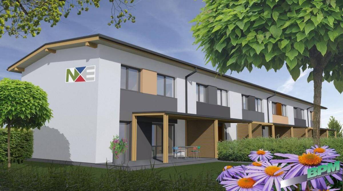 Bei der Ausstattung aller Reihenhäuser stehen Optik und Qualität im Vordergrund. Über den großzügigen Wohnraum gelangt man auf die überdachte Terrasse und den eigenen Garten. Im Obergeschoss finden die Bewohner in drei Schlafräumen und einem großzügigen Badezimmer Platz zur Entfaltung. Die helle und sonnige Atmosphäre verschafft mehr Wohnfreude. Hier lässt es sich gut leben! Der einmalige Finanzierungsbeitrag bei Mietkauf beträgt: 74.541,71€