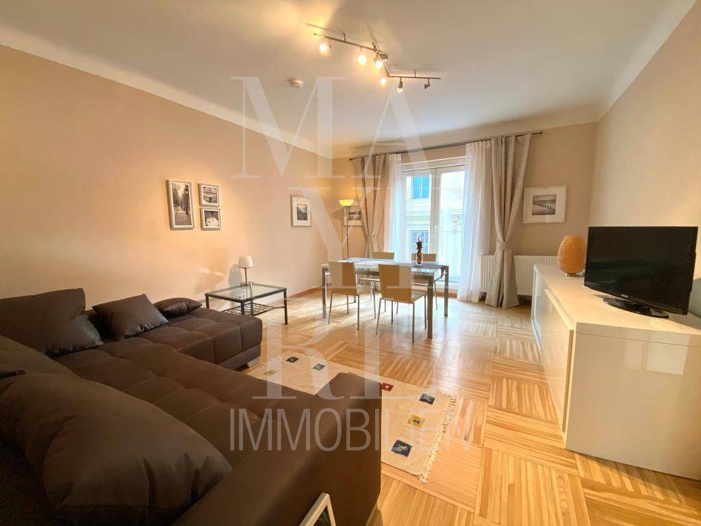 voll möblierte Innenstadtwohnung hinter dem Stephansdom, sehr zentral gelegen RAUMAUFTEILUNG 68 m2 voll möbliert im 3. Stock mit Lift gelegen, sonnig - freundlich zentrales Vorzimmer, großer Abstellraum, Wohn/ -Esszimmer, Schlafzimmer mit großzügigem begehbaren Schrank, separate, weiße Einbauküche, Duschbad, WC separat, Kellerabteil AUSSTATTUNG Die Wohnung ist komplett und modern möbliert: Esstisch mit 4 Stühlen, Sofa mit Sofatisch, TV, Mini HI-FI, Kommode, Doppelbett (italienisches Design) mit Nachttisch und dazu passender Kommode, komplettes Küchengeschirr, Staubsauger, Waschmaschine, Handtücher etc. Neue Gasetagenheizung LAGE 1 Minute zur Station U3 Stubentor 3 Minuten zur Station U1 StephansplatzAngaben gemäß gesetzlichem Erfordernis: Miete € 1034,36 zzgl 10% USt. Betriebskosten € 102 zzgl 10% USt. Umsatzsteuer € 113,64 ------------------------------------------------------------------ Gesamtbetrag € 1250