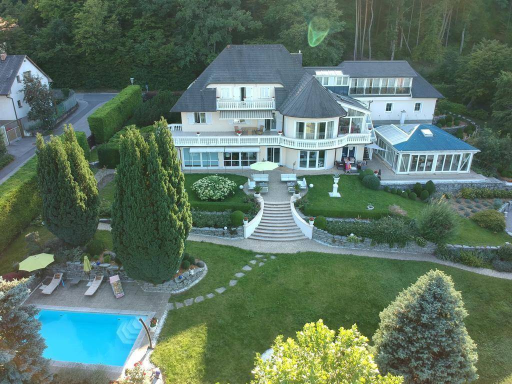 PREISREDUKTION !!! 3 separate Wohneinheiten möglich: Groß- bzw. Mehrfamilienhaus im Kurort zu verkaufen Zum Verkauf steht ein Mehrfamilienhaus im Kurort Bad Sauerbrunn in Burgenland, in der Nähe von Wiener Neustadt, in ca. 1 Stunde Autofahrt von Wien. Von der Villa eröffnet sich ein fantastischer Ausblick über den Kurort. Das großzügig geschnittene Haus hat ca. 800 m2 Nutzfläche und ca. 670 m2 Wohnfläche, verteilt auf 3 Etagen. Insgesamt sind es 6 Schlafzimmer, die perfekt eine große Familie beherbergen können. Die 3 Geschosse von diesem außergewöhnlichen Ferienhaus teilen sich folgendermaßen auf: Im Erdgeschoß kommen Sie vom Eingangsbereich in das Wohnzimmer mit Terrasse sowie in den Wintergarten mit einem Office- bzw. Arbeitsbereich. Rechts vom Eingang erreichen Sie die 1. Wohnebene mit 2 Schlafzimmer, Toilette, Bad und Küche. Im oberen Geschoß befindet sich ein riesiger Partyraum mit einer Musik- und Lichtanlage, das Master Schlafzimmer mit eigenem Badezimmer sowie das große Büro. Im ebenerdigen Untergeschoß (bedingt durch die leichte Hanglage) befinden sich neben dem Kinderspiel- bzw. Wohnzimmer eine Küche, ein Bad, sowie 2 weitere Schlafzimmer. Außerdem befinden sich in diesem Geschoß ein beheizter Innenpool, eine Saunaanlage mit finnischer Sauna, Jacuzzi, Dusche und WC, ein Ruheraum mit Solarium, sowie ein Fitnessraum. Vom Untergeschoß gelangt man in den großen Landschaftsdesign-Garten, welcher über einen Außenpool, einen eigenen Koi-Teich sowie einen Barbecue-Platz verfügt, mediterrane Stimmung inklusive. Ebenfalls befinden sich auf dem Grundstück ein Wintergarten mit einer Glasfassade mit Schiebeelementen. Der Raum bietet Platz für ca. 80 Gäste und verfügt über Home Cinema-Anlage, Bar, Kamin, sowie sämtlichen anderen Raffinessen. Ein separates Gäste- bzw. Bediensteten-Haus mit einem eigenen Appartement (Küche, Schlafzimmer, Bad) rundet das Angebot im Gartenbereich ab. Links vom Erdgeschoß-Eingang befindet sich eine Garage mit 4 großzügigen Parkplätzen. Vor der Garage sind noch 2 PKW-Außenstellplätze vorhanden. Zusammenfassend gesagt, verfügt das Haus über alle Annehmlichkeiten, die das Leben in der Großfamilie sowie den Empfang von Gästen bestens gestalten. Das Haus kann aufgrund von seiner Eigentümersituation (eine Gesellschaft) als Share Deal erworben werden, was das Erlangen der grundverkehrsbehördlichen Genehmigung für den ausländischen Käufer erspart. Wir freuen uns auf Ihre Anfrage und übersenden Ihnen sehr gerne weitere Informationen zu diesem außergewöhnlichen Anwesen!Angaben gemäß gesetzlichem Erfordernis: Heizwärmebedarf: 105.9 kWh/(m²a) Klasse Heizwärmebedarf: D Faktor Gesamtenergieeffizienz: 2.35 Klasse Faktor Gesamtenergieeffizienz: D