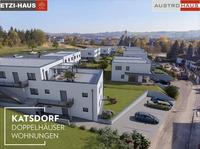 WIR HABEN DAS PASSENDE GRUNDSTÜCK FÜR SIE in KATSDORF am Sonnenhang - 16 Doppelhaushälften - 6 Eigentumswohnungen - Baustart Frühjahr 2020 - Verkaufsstart Doppelhaushälften Jänner 2020 Reservieren Sie sich Ihr Grundstück! Neue Preise ab 2020 Mehr Informationen zu den Projekten erhalten Sie auf - unserer HOMEPAGE www.etzi-haus.com/haus-mit-grund/doppelhaeuser - bei Ihrem persönlichen BERATER HAUSBEISPIELE Mehr Hausbeispiele finden Sie auf unserer Homepage unter www.austrohaus.at oder in unserem GRATIS Katalog. WISSEN SCHAFFT SICHERHEIT - DIE BAUINFOTAGE Informieren Sie sich bei unseren kostenlosen Bauinfotagen über alles, was Sie über das Projekt "Hausbau" wissen müssen. Termine und Anmeldung finden Sie unter www.etzi-haus.com oder unter www.austrohaus.at. Für weitere Fragen zum Projekt steht Ihnen gerne unser Projektleiter zur Verfügung. Siegfried Mosser Projektentwicklung – Verkauf Tel.: 0650 / 89 61 011 E-Mail: s.mosser@etzi-haus.com Mit einer Anfrage sind Sie damit einverstanden, dass Ihre personenbezogenen Daten in der Etzenberger Holding GmbH (AUSTROHAUS, ETZI-HAUS) gespeichert, verarbeitet und benutzt werden um mit Ihnen in Kontakt zu treten. Die angegebenen Daten werden vertraulich behandelt. Alle Angaben ohne Gewähr. Druckfehler und Preisänderungen vorbehalten.