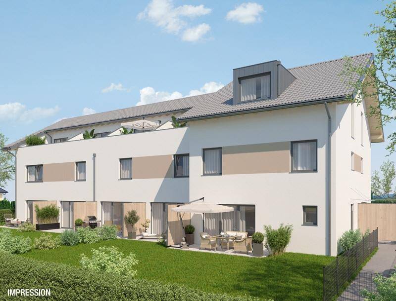 In herrlich grüner Lage entstehen in der familiären Gemeinde Jeging fünf komfortable 105 m² große Reihenhäuser, eine charmante 76 m² 3-Zimmer-Terrassen- und eine großzügige 52 m² 2-Zimmer-Gartenwohnung mit Hauscharakter. Alle Wohnperlen sind ideal nach Südwesten orientiert und vereinen modernen Komfort mit zeitlos schöner Ausstattung und dem besonderen Charme des Landlebens. Zum Verlieben schön ist der malerische Ausblick auf saftige Wiesen, Felder und Wälder. Dank dem offenen, lichterfüllten Wohnambiente fühlen Sie sich sofort zu Hause. Kommunikatives Zentrum ist die offene Küche. Auch der geräumige Wohn-Ess-Bereich lädt zu geselligem Beisammensein mit Ihren Liebsten ein. Wahre Relaxoasen sind die ruhigen Schlafzimmer und die eleganten Bäder. Die angenehm großen, sonnenverwöhnten Terrassen laden zu einer Auszeit in der frischen, wunderbar sauberen Landluft ein. Hobbygärtner leben in den bis zu 147 m² großen Gärten ihren Traum. EA i. A.