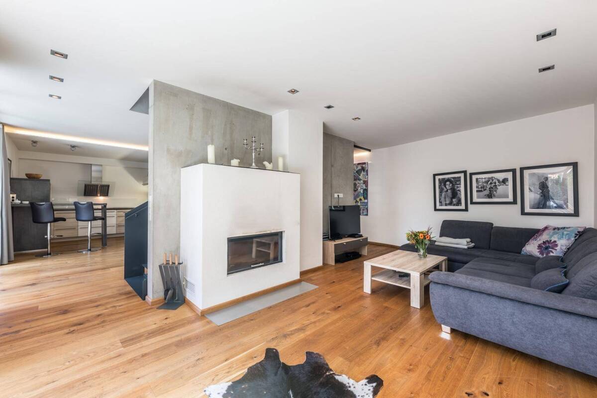 Die Wahl eines modernen Stils im Innen- und Außenbereich in Kombination mit traditionellen Bauelementen machen aus dieser Immobilie ein wahres Einzelstück auf dem hiesigen Markt. Bei Betreten der Liegenschaft gelangen Sie in einen ca. 10 m² großen Eingangsbereich, welcher ausreichend Platz für eine geräumige Garderobe bietet. Zur linken Hand wurde eine Gästetoilette sowie auf der gegenüberliegenden Seite ein großzügiger Wirtschaftsraum untergebracht. Im südlichen Bereich dieser Ebene befindet sich der Mittelpunkt dieser Liegenschaft, der offen gestaltete Wohn- und Essbereich mit einer ansprechenden Einbauküche. Ein offener Kamin in der Liegelounge rundet diese Etage ab. Raumhohe Glasfassaden im westlichen Teil sorgen für eine helle Atmosphäre und bieten zusätzlich einen direkten Zugang zu dem idyllischen Außenbereich mit einer ca. 35 m² großen Terrasse sowie dem kleinen aber feinen Gartenanteil. Über eine imposante Stiege erreichen Sie das Obergeschoss, welches mit einem ca. 23 m² großen Schlafzimmer, dem edlen Bad sowie einer ansprechenden Galerie, welche universell nutzbar ist und momentan als Büro fungiert, begeistert. Von diesem Geschoss aus genießen Sie herrliche Ausblicke auf die umliegende Bergwelt sowie das Kitzbüheler Horn. Auch bei dem Untergeschoss dieser Immobilie wurde sehr viel Wert auf Weitläufigkeit gelegt. So beinhalt alleine der natürlich belichtete Wellnessbereich ca. 35 m², die Keller- und Technikräume weitere 22 m² und der Flur ca. 11 m². Auch in dieser Ebene befinden sich ein geräumiges, natürlich belichtetes Schlafzimmer sowie ein luxuriös gestaltetes Duschbad.