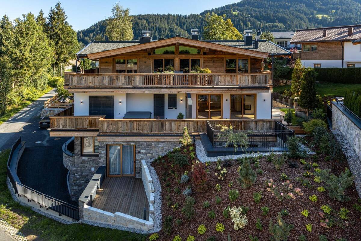 In einer spektakulären Lage der Prama begrüßt Sie dieser exklusive Neubau, welcher insgesamt drei luxuriöse Domizile enthält. Zurzeit bieten wir die Wohnung TOP1 an, welche sich über eine Etage erstreckt. Das wunderschön gestaltete Wohnzimmer mit Designeinrichtung, das sicherlich als Highlight dieser Immobilie zu bezeichnen ist, glänzt durch die offene Aufteilung, einen kuscheligen Kamin mit Terrastonebeschichtung samt Schwarzstahleinsatz für das Brennholz sowie großzügigen Fensterfronten, welche einen herrlichen Panoramablick auf das Kaisergebirge gewährleistet. Neben dem attraktiven Wohnbereich beinhaltet dieses Apartment einen wunderbaren Masterbereich mit seinem äußerst großzügigen Schlafzimmer, einer wunderschöne ausgestatteten Garderobe, dem noblen Designbadezimmer mit Dusche, Badewanne und einladender Altholzsauna sowie eine geschützte Terrasse im Außenbereich. Zwei weitere Schlafzimmer mit gemeinsamem Balkon und Badezimmer, ein Gäste-WC, die praktische Abstellkammer sowie ein äußerst großzügiger, nobel ausgestatteter Flur runden das Interieur dieser luxuriösen Einheit ab. Zu diesem Angebot gehört zusätzlich ein ca. 25 m² großes Kellerabteil, ein Schrank im Skikeller und zwei TG-Stellplätze. Besonders hervorzuheben sollte bei dieser Einheit die gelungene Raumaufteilung, das harmonische Farb- und Lichtkonzept sowie die absolut hochwertige Designeinrichtung in sämtlichen Bereichen. Selbstverständlich ist auch die Technik auf dem neuesten Niveau, ein Personenaufzug, ein Gasanschluss in der Küche, dreifach verglaste Lärchenfenster, Raffstore, die extern steuerbare Fußbodenheizung sowie weitere Details sind hier selbstverständlich.