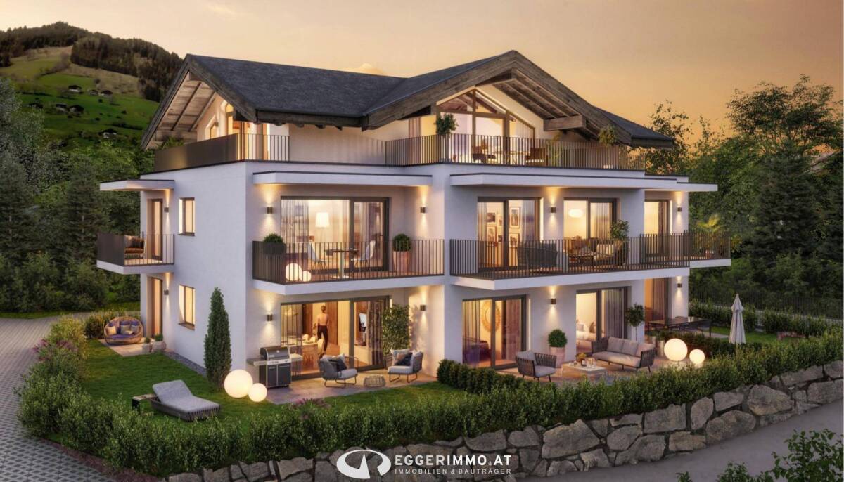 In sonniger Lage und mit fantastischem Blick auf die umliegende Bergwelt entsteht in Golfplatznähe in Zell am See ein exklusives und qualitativ hochwertiges Wohnhaus mit nur 6 Einheiten und eigener Tiefgarage.Die Wohneinheit Top 3 überzeugt mit einer großzügigen Garten- und Terrassenfläche. Ein traumhafter Blick auf die umliegende Bergwelt und auf das Kitzsteinhorn zeichnen diese Einheit besonders aus.Highlights:kleine, luxuriöse Anlage mit nur 6 Einheiten und eigener Tiefgaragegroßzügige, Terrassen-, Balkon-, oder Gartenflächenruhige und sonnige Lage mit unverbaubarem Ausblick, direkt neben dem Golfplatzgute InfrastrukturPersonenlift (von der Tiefgarage in alle Wohngeschosse) Elektrische AußenraffstoresSprechanlage mit Kamera- und Videofunktionenergieeffiziente Heizung (Wärmepumpe und Solaranlage)keine KäuferprovisionSind Sie neugierig geworden?Gerne senden wir Ihnen auf Anfrage weitere Details zu. Wir freuen uns auf Ihre Kontaktaufnahme!Infrastruktur / EntfernungenGesundheit Arzt <2.000m Apotheke <1.000m Krankenhaus <2.500m Kinder & Schulen Schule <1.500m Kindergarten <3.500m Nahversorgung Supermarkt <500m Bäckerei <2.000m Einkaufszentrum <2.000m Sonstige Bank <2.000m Geldautomat <2.000m Post <2.000m Polizei <3.500m Verkehr Bus <500m Bahnhof <500m Flughafen <1.500m Angaben Entfernung Luftlinie / Quelle: OpenStreetMap
