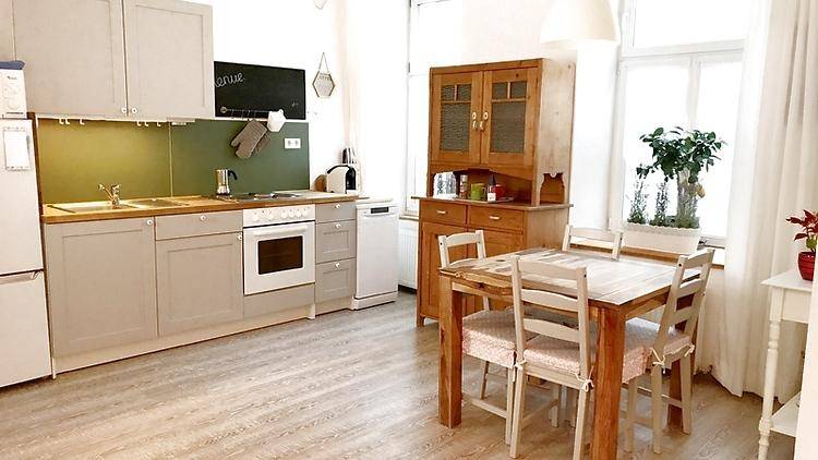 MIETDAUER ab sofort bis 27. Juli 2021 (mind. 2 Monate) Allgemein Die ruhige, nach Osten und Westen ausgerichtete Wohnung befindet sich in einem sanierten zweistöckigem Gründerzeithaus aus dem Jahr 1870, verfügt über einen kleinen eigenen Außenbereich und ist komplett ausgestattet. Ca. 50-100 Meter entfernt sind Stationen der Straßenbahn Linie 2, 9, 43, 44 und Bus 10A. Eine öffentliche, sehr helle, moderne Tiefgarage befindet sich in 150m Entfernung in der Geblergasse. 48m², im Parterre mit Lift, 1 Schlafzimmer, in Altbau, frisch renoviert, Wohnzimmer mit Parkett/Laminat, Schlafzimmer mit Parkett/Laminat Maximal 3 Personen, Rauchen in der Wohnung nicht erlaubt Ergänzende Bemerkungen zur Miete Inkl. Heizung, Strom, Wasser, Internet, TV (inkl. Anschluss und Abo) Der Mieter übernimmt zusätzlich die Endreinigung von 100 €. WIN-PREIS Der Anbieter dieses Objekts vermietet zu Selbstkosten (resp. zum Marktpreis bei Eigentümern). Möblierung Outdoormöbel im Innenhofgarten. Viel Stauraum in der Wohnung. Im Schlafzimmer steht ein King Size Bett (180x200 cm). modern, stilvoll, im IKEA-Stil, antike Möbel, gemütlich 1 Doppelbett, 1 Schlafsofa Ausstattung TV (inkl. Anschluss und Abo), HiFi, Internet Waschmaschine & Wäschetrockner Balkon / Terrasse / Garten 1 Terrasse Garten Gartensitzplatz Küche Kücheneinrichtung für 4 Personen Große Gefrier Kühlkombination, E-Herd mit Backrohr, Filterkaffee, Mokkamaschine, Wasserkocher, Toaster, Mixer. offene Küche, Geschirrspüler, Mikrowelle, Kaffeemaschine Bad / Dusche / WC Waschmaschine mit Wäschetrockner. Erstausstattung an Hygiene- und Putzartikeln, Bügelbrett, Bügeleisen 1 Dusche & WC Energieausweis Energieeffizienzklasse C, Baujahr Gebäude 1870 ********************************************** 2 ROOM APARTMENT IN WIEN - 17. BEZIRK - HERNALS, FURNISHED, TEMPORARY RENTAL PERIOD from now to July 27, 2021 (min. 2 months) General information The quiet, east and west-facing apartment is located in a renovated two-story Wilhelminian style house from 1870, has a small private outdoor area and is fully equipped. Approximately 50-100 meters away are stations of the tram line 2, 9, 43, 44 and bus 10A. A public, very bright, modern underground car park is located 150 meters away in the Geblergasse. 48m², ground floor with elevator, 1 bedroom, in older building, recently renovated, parquet/laminate in living room, parquet/laminate in bedroom(s) 3 persons max., smoking in apartment not allowed Complementary remarks on the rent Heating, electricity, water, internet, TV (incl. connection and subscription) incl. The tenant pays the final cleaning of 100 €. WIN PRICE The provider offering this property is renting out at his own cost (resp. at market price if he is an owner). Furniture Outdoor furniture in the courtyard garden. Lots of storage space in the apartment. The bedroom has a king size bed (180x200 cm). modern, stylish, IKEA style, antique furniture, cosy 1 double bed, 1 sofa bed Equipment TV (incl. connection and subscription), HiFi, internet washing machine & tumbler Balcony / Terrace / Garden 1 terrace garden patio Kitchen Kitchen equipped for 4 persons Large fridge-freezer, electric stove with oven, filter coffee, mocha machine, kettle, toaster, blender. open kitchen area, dishwasher, microwave, coffee maker Bath / Shower / Toilet Washing machine with dryer. Initial equipment for hygiene and cleaning articles, ironing board, iron. 1 shower & toilet Energy certificate Energy efficiency class C, Year of construction 1870