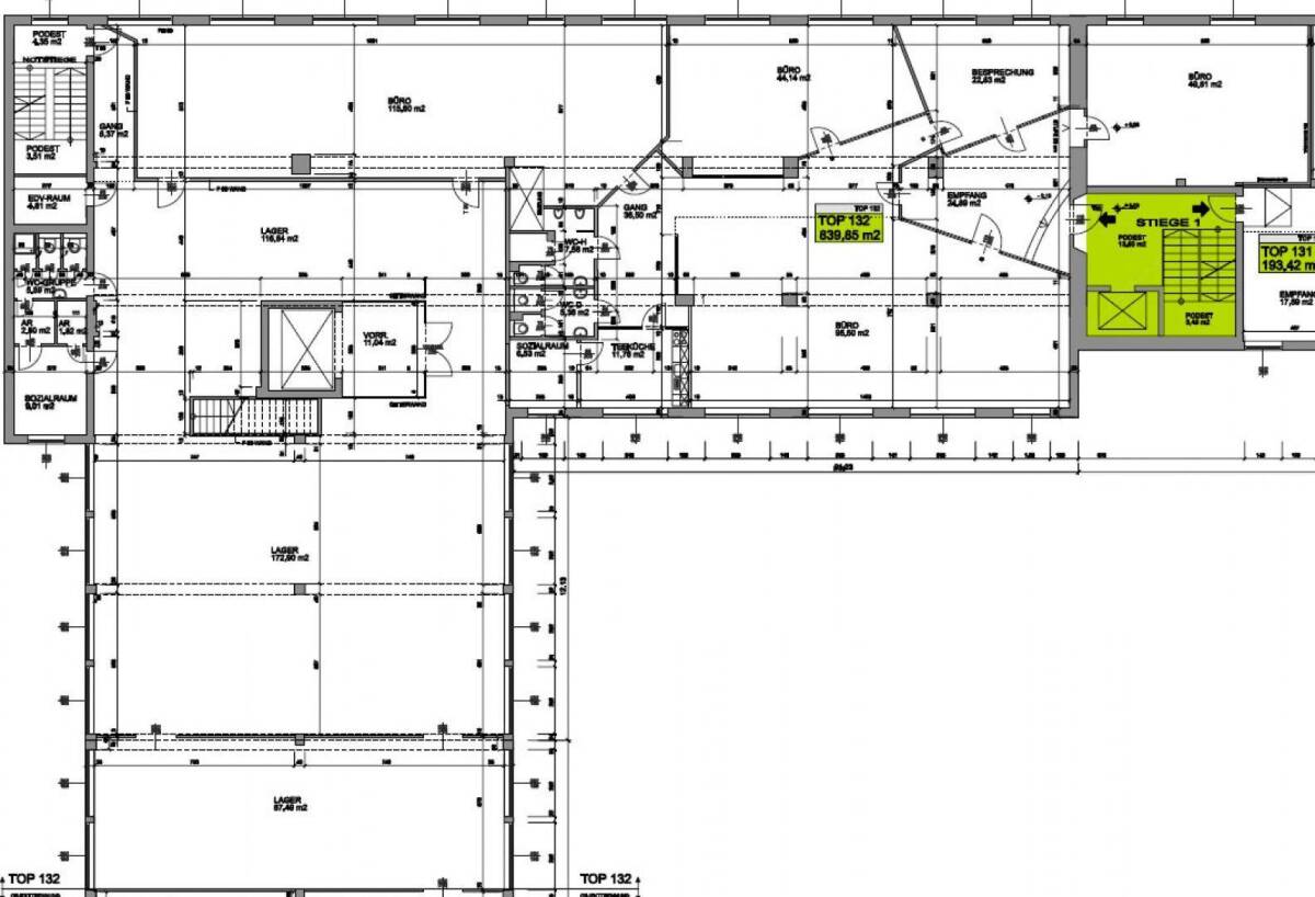 Dieses Büro-Objekt ist das flächenmäßig größte Vermietungsobjekt in diesem Gebäudekomplex. Mit 839 m² verfügt diese Einheit einen sehr hellen Eingangsbereich, der durch seine Glaswände besticht. Von diesem Haupteingang aus gelangt man in einen Besprechungsraum, zwei weitere Großraumbüros und einem Einzelbüro.Ebenfalls gibt es eine voll ausgestattete Küche mit Sicht auf den Innenhof. Da sich das Objekt im 3. Obergeschoss befindet, ergibt sich ein ausgezeichneter. Blick auf die Donau.Über das hintere Großraumbüro kommt man in das über 400 m² große Lager. Das Büro ist mit einem Lastenaufzug ausgestattet, der direkt in den Lagerraum führt. Im Lager befindet sich ein großer Safe.Beheizt wird die gesamte Anlage über eine Gaszentralheizung.LAGE UND INFRASTRUKTURNahversorgung:Hofer 60 MeterLidl 170 MeterSpar 140 MeterBilla 450 MeterDer Handelskai ist nur 950 Meter also 12 Gehminuten vom Büro entfernt. Da der Handelskai über die U6 Station "Handelskai, sowie die Schnell-Bahnen S1, S2, S3, S5, S6, S7, S9, S15, S45 und die Autobus-Stationen 5A, 11A, 11B, 37A verfügt, ist sie strategisch in einer top Lage.Apotheke 550 MeterKrankenhaus 1700 MeterArzt 450 MeterPostbriefkasten 500 MeterEiner der wichtigsten Punkte ist die direkte Anbindung an den Zubringer zur A22 über die Floridsdorferbrücke.FAGG-Hinweis:Wir bitten Sie um Verständnis, dass wir aufgrund der Nachweispflicht gegenüber dem Eigentümer nur Anfragen mit vollständiger Angabe der Anschrift bearbeiten können. Der Interessent wird auf die erweiterten Richtlinien des Konsumentenschutzes im Sinne des FAGG hingewiesen. Der Makler hat ein wirtschaftliches Naheverhältnis zum Auftraggeber und tritt als Doppelmakler auf. Es gelten die AGBs der Immobilienwirtschaft.Es wird darauf hingewiesen, dass die angeführten Daten auf Informationen des Eigentümers oder Dritter (zB Behörden) beruhen, sodass für die Richtigkeit keine Gewähr übernommen werden kann.Infrastruktur / EntfernungenGesundheit Arzt <500m Apotheke <500m Krankenhaus <1.500m Klinik <1.000m Kinder & Schulen Schule <500m Kindergarten <500m Universität <1.000m Höhere Schule <2.000m Nahversorgung Supermarkt <500m Bäckerei <1.000m Einkaufszentrum <1.000m Sonstige Bank <500m Geldautomat <500m Post <1.000m Polizei <500m Verkehr Bus <500m Straßenbahn <500m U-Bahn <1.000m Bahnhof <1.000m Autobahnanschluss <1.000m Angaben Entfernung Luftlinie / Quelle: OpenStreetMap
