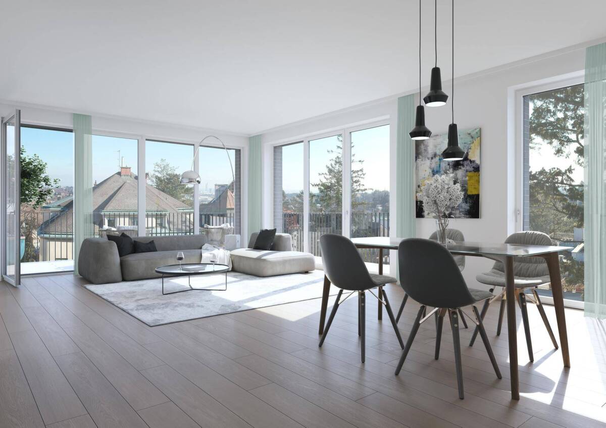 WOHNEN MIT GENUSS IN DER GLANZINGGASSE In sanften Serpentinen hinauf und an der ehemaligen Kinderklinik Glanzing vorbei führt die Glanzinggasse bis zu diesem traumhaften Grundstück, auf dem bis ca. Ende 2021 eine elegante Elf-Parteien Villa mit herrlichem Blick auf den Hackenberg entstehen wird. Die Wohneinheit Top 6 (Grüner Veltliner) befindet sich im 1. Obergeschoss der exklusiven Neubauvilla und teilt sich wie folgt auf: • Eingangsbereich mit Vorraum • Abstellraum • WC • Wohn-Essbereich mit Ausgang zum Balkon • 1 Hauptschlafzimmer mit Bad en suite • 2 Schlafzimmer - 1 separates Bad