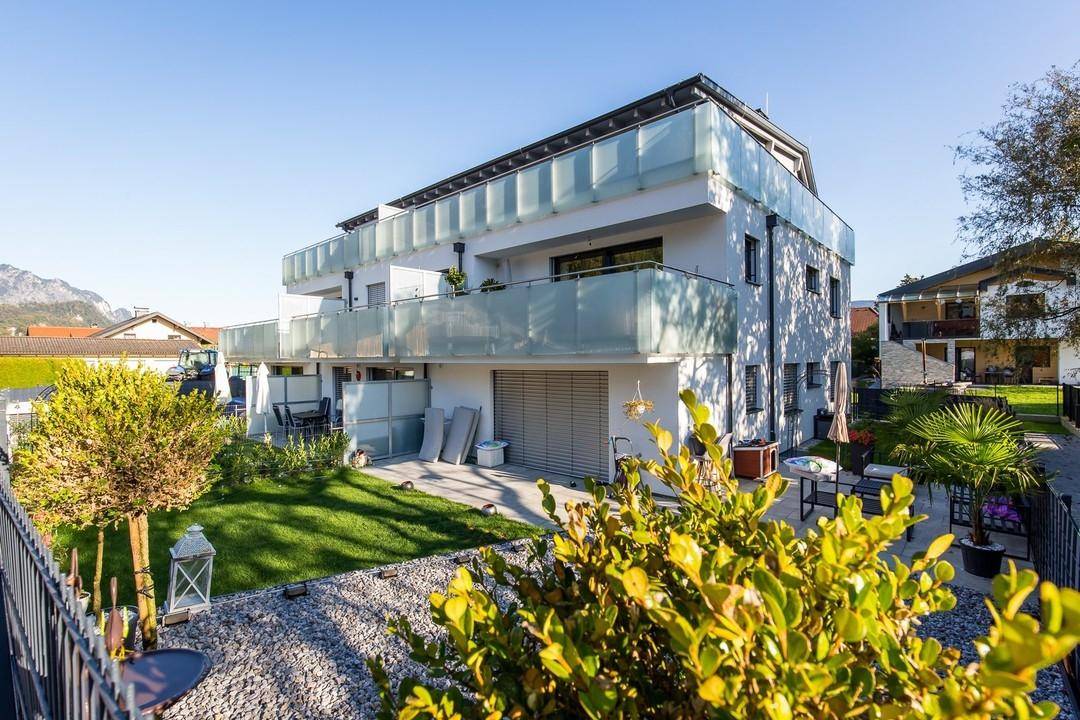 GANZ ALLGEMEIN Hallein hat viel zu bieten. Wer hier wohnt, genießt alle Vorteile einer charmanten Kleinstadt mit Kultur, Restaurants, Infrastruktur und Einkaufsmöglichkeiten. Genau hier, in der ruhigen Nachbarschaft einer Halleiner Wohngegend, liegt ein Neubau-Wohnobjekt. Die noch in Bau befindliche Immobilie bietet Wohnraum für acht Mieter. 2- bis 4-Zimmer-Terrassenwohnungen sorgen auf drei Geschossen für modernen Wohnkomfort in vielen Facetten. Das vom Architektenbüro Kurz geplante Wohnhaus ist süd-südwestseitig ausgerichtet und verfügt (je nach Geschoss) über Terrasse und Garten, Balkon oder Dachterrasse. Von hier aus eröffnen sich schöne Ausblicke auf die nahen Barmsteingipfel sowie Dürnberg, Untersberg und Tennengebirge. Ein hauseigener Spielplatz bietet Freiraum für Familien mit Kindern. Der Neubau ist mit 12 Tiefgaragenplätzen ausgestattet – das ist wichtig, denn mit dem Auto ist man hier ganz flott auf der Autobahn und somit auch schnell in Salzburg, Deutschland oder auf dem Weg in die Berge. Modernes Wohnen in Hallein – das kann was! Beispiel Wohnbauförderung: 2 Personen ohne Kinder: Förderbetrag ca. € 33.700,00 (Angaben lt. Auskunft SIR ohne Gewähr) ZUM RAUMPROGRAMM Vorraum, Abstellraum, Badezimmer mit Wanne und WM-Anschluss, Kinderzimmer, Gäste-WC, Wohn-/Essbereich und Schlafzimmer jeweils mit Zugang zur Terrasse. ZUR LAGE Das Objekt liegt in einer Wohnsiedlung nördlich der Perner Insel, in guter Nachbarschaft mit Mehrfamilienhäusern. Die entspannte Verkehrslage in einer Sackgasse sorgt für die nötige Ruhe, die man sich von einem guten Zuhause erwartet. Die Natur ist nicht weit. In Gehweite befinden sich das Salzachufer und bewirtschaftete Wiesen für Spaziergänge. Wer wandern möchte, hat mit den Barmsteinen ein schönes Wandergebiet und mit dem Dürnberg ein Skigebiet direkt vor der Haustüre. Die Verkehrsanbindung ist top und überzeugt mit naher Autobahnauffahrt, direkter S-Bahnverbindung nach Salzburg (ca. 12 Minuten zu Fuß bzw. 2 Minuten mit Auto zum Bahnhof Oberalm) und praktischen Busverbindungen. Die Stadt Hallein besitzt eine sehr gute Infrastruktur mit Nahversorgern, Shops, Kindergärten, Schulen, Restaurants, Cafés, Dienstleistern, Ärzten, Krankenhaus sowie vielen Sport- und Kulturstätten. Egal ob internationale Küche, Konzerte, Kunst, Kino oder einfach nur ein gutes Speiseeis – hier gibt es alles, was gute Lebensqualität ausmacht. ZUR AUSSTATTUNG - Premiumdielenboden von MAFI - Hochwertige Sanitärausstattung - Flachwannendusche - Großformatiges Feinsteinzeug (60x60) - Fußbodenheizung - Aufzug - Tiefgarage - Elektrische Außenbeschattung (optional) ZU DEN BESONDERHEITEN - Energieeffiziente Bauweise - Beheizung mit Pellets - Solar- & Photovoltaik-Anlage - Günstige Betriebskosten - Großzügige Terrassen & Gärten - Hochwertige Innenausstattung - Markenfenster 3-fach Isolationsglas - Lichtdurchflutete Architektur Wir haben Ihr Interesse geweckt? Herr Schiessendoppler freut sich auf Ihre Anfrage. KONTAKT MY HOME IS MY HOME Immobilien W. Schiessendoppler & Partner OG Mag. (FH) Wolfgang Schiessendoppler +43 (0)650 655 655 6