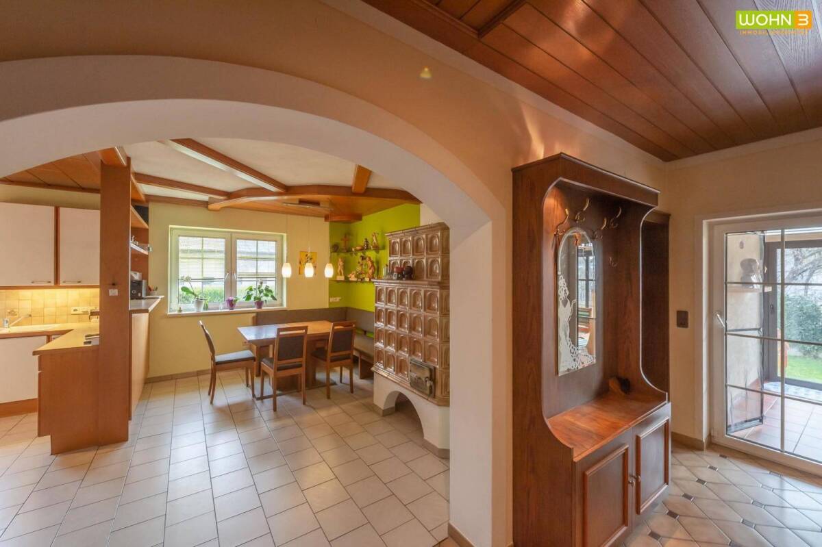 Liebevoll gepflegtes, großzügiges Anwesen nur 7 Autominuten von Tulln entfernt! Das Haus bietet ca. 170 m² Wohnfläche und zusätzlich 206 m² Nutzfläche. Der Wintergarten, der Wellnessbereich mit Sauna, 3 Badezimmer und 3 WCs sind nur einige Highlights dieses Traumhauses! Das Anwesen eignet sich sehr gut für eine große Familie oder wenn Sie Platz für Wohnen und Arbeiten unter einem Dach suchen: ein Atelier, eine Arztpraxis, Behandlungsräume für Physiotherapie etc - hier ist alles möglich!Im Erdgeschoss finden Sie eine offene Küche mit Essbereich und Kachelofen, 2 Zimmer, einen Wintergarten, Speis, Badezimmer mit Dusche und Badewanne, ein WC (extra) und einen Abstellraum. Das Erdgeschoss wird über eine Fußbodenheizung beheizt. Über eine Holzstiege erreicht man die Mansarde mit Vorraum, einem ca 24 m² großen Zimmer und einem Büro. Auch hier wird mit einer Fußbodenheizung geheizt. Im Dachgeschoß gelangt man über einen sehr großzügiger Vorraum mit viel Staufläche zum einem ca 29 m² großen Zimmer, einem Badezimmer und einem WC (extra). 45 m² des Dachbodens können noch fertig ausgebaut und nach Ihren Wünschen gestaltet werden (Fenster, Heizkörper bereits vorhanden). Der gesamte Dachboden wird über Radiatoren beheizt, auch der Bereich des Rohdachbodens.Das Haus ist vollunterkellert: Im Keller sind auf 95 m² ein Raum mit Kachelofen und ein Wellness-Bereich mit Sauna, Dusche und Waschbecken untergebracht. Weiters befindet sich eine Waschküche, ein Technikraum, ein Heizraum, ein Abstellraum und ein WC im Keller.Das Grundstück selbst ist 1356 m² groß, das Haus wurde an der hinteren Seite errichtet und befindet sich dadurch in einer herrlichen, ruhigen und grünen Lage. Über ein elektrisches Einfahrtstor können Sie bequem mit dem Auto bis zum Haus bzw. zur Doppelgarage vorfahren. In der 27 m² großen Doppelgarage finden 2 Autos, Fahrräder etc Platz. Anschließend an die Garage befindet sich eine Werkstatt inklusive kleinem Waschbecken. Das Haus ist durch eine Alarmanlage geschützt und verfügt über eine Gegensprechanlage. Eine Solaranlage am Dach unterstützt die Versorgung des Hauses mit Warmwasser.Im Garten haben Sie auf über 1000 m² Fläche die Möglichkeit, Bäume und Sträucher ganz nach Ihren Wünschen zu pflanzen und den Garten so in ein grünes Paradies zu verwandeln! Es ist ausreichend Platz für einen Swimmingpool, eine Sandkiste, eine Rutsche, ... - was auch immer Ihnen und Ihrer Familie Freude bereitet! Eine liebevoll gestaltete Böschung mit kleinem Brunnen und Sitzbank hinter dem Haus lädt zum Verweilen ein. Ein Hauswasserbrunnen versorgt Sie mit Grundwasser zum Gartengießen. In einer Gartenhütte finden alle Gartengeräte Platz. Durch die Flächenwidmung Bauland-Agrar habe Sie auch die Möglichkeit, Tiere wie Hendl, Hasen, Gänse, etc. zu halten.Raumaufteilung Erdgeschoss: Vorraum offene Wohnküche mit Eßbereich 2 Zimmer Speis Abstellraum Badezimmer mit Dusche und Badewanne WC (extra) Wintergarten Raumaufteilung Mansarde: Vorraum 1 großes Zimmer von ca 24 m² 1 Zimmer von ca 10 m² Raumaufteilung Dachgeschoss: Vorraum 1 großes Zimmer von ca 29 m² Badezimmer mit Dusche WC (extra) ca 45 m² Rohdachboden (mit Fenstern und Heizkörpern) Raumaufteilung Kellergeschoss: Vorraum Bauernstube mit Kachelofen Wellnessbereich mit Sauna, Dusche und WaschbeckenVorraum Waschküche Technikraum Heizraum Abstellraum WCÖffentliche Anbindung: Busstation für den Bus nach Tulln befindet sich unweit des Hauses. Der Bus nach Klosterneuburg ist in 3 Minuten zu Fuß erreichbar. Die S-Bahn (S 40) nach Wien ist in 7 Minuten zu Fuß erreichbar und bringt Sie in 33 Minuten nach Heiligenstadt.Infrastruktur: Ein Billa befindet sich um die Ecke. Im Ort selbst gibt es einen Kindergarten und eine Volksschule. Alle weiterführenden Schulen (Gymnasium, HTL, NMS, HWS) finden Sie im nahegelegenen Tulln.Energieausweis: Der Heizwärmebedarf beträgt 121 kWh/m2a, welcher der Klasse D entspricht.Für weitere Fragen und zur Vereinbarung von Besichtigungsterminen steht Ihnen Frau Mag. Barbara Schwarzenberger gerne zur Verfügung unter: 0660 870 89 92 Unsere Leistung – Ihr Gewinn: www.wohn3.atWir weisen ausdrücklich auf unser wirtschaftliches Naheverhältnis mit dem Abgeber/der Abgeberin und auf unsere Vermittlungstätigkeit als Doppelmakler hin.Irrtum und Änderungen vorbehaltenInfrastruktur / EntfernungenGesundheit Arzt <500m Apotheke <4.500m Krankenhaus <4.500m Kinder & Schulen Schule <500m Kindergarten <1.000m Universität <4.500m Höhere Schule <5.500m Nahversorgung Supermarkt <500m Bäckerei <500m Einkaufszentrum <5.500m Sonstige Bank <5.000m Geldautomat <5.000m Post <500m Polizei <4.000m Verkehr Bus <500m Autobahnanschluss <4.500m Bahnhof <500m Angaben Entfernung Luftlinie / Quelle: OpenStreetMap