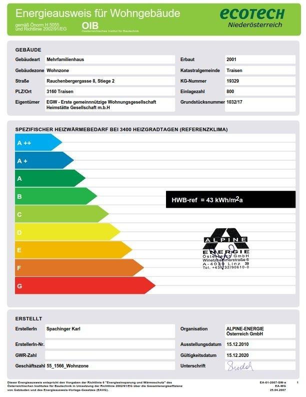 Verschiedene 3 Zimmerwohnungen zu vermieten: 3 Zimmer Wohnung in der Rauchenbergergasse 8/2/10, 3160 Traisen zu vermieten. Die Wohnung verfügt über ein Vorzimmer, 1 Badezimmer mit Wanne, 1 WC, 2 Zimmer, 1 Abstellraum, 1 Wohnküche mit einer Nutzfläche von ca. 72,41 m². Alle Räume sind vom Vorraum aus zentral begehbar. Die monatliche Miete beträgt ca. € 533,71. Ein Finanzierungsbeitrag von ca. € 8.353,50 wäre vor Wohnungsübergabe zur Einzahlung zu bringen. Die Wohnung wird in unbefristeter Hauptmiete vergeben und ist provisionsfrei, da vom Bauträger direkt vergeben wird. Bei Interesse der Wohnung bzw. näheren Informationen, kontaktieren Sie bitte Frau Riegler unter 01/5451567-37 oder Waltraut.riegler@egw.at. *FÜR INFORMATIONEN GEBEN SIE BITTE FOLGENDE OBJEKT NUMMER BEKANNT: 15660 010* 3 Zimmer Wohnung in der Rauchenbergergasse 8/2/12, 3160 Traisen zu vermieten. Die Wohnung verfügt über ein Vorzimmer, 1 Badezimmer mit Wanne, 1 WC, 2 Zimmer, 1 Abstellraum, 1 Wohnküche mit einer Nutzfläche von ca. 72,33 m². Alle Räume sind vom Vorraum aus zentral begehbar. Die monatliche Miete beträgt ca. € 535,24. Ein Finanzierungsbeitrag von ca. € 7.793,97 wäre vor Wohnungsübergabe zur Einzahlung zu bringen. Die Wohnung wird in unbefristeter Hauptmiete vergeben und ist provisionsfrei, da vom Bauträger direkt vergeben wird. Bei Interesse der Wohnung bzw. näheren Informationen, kontaktieren Sie bitte Frau Riegler unter 01/5451567-37 oder Waltraut.riegler@egw.at. *FÜR INFORMATIONEN GEBEN SIE BITTE FOLGENDE OBJEKT NUMMER BEKANNT: 15660 012* 3 Zimmer Wohnung in der Rauchenbergergasse 8/2/16, 3160 Traisen zu vermieten. Die Wohnung verfügt über ein Vorzimmer, 1 Badezimmer mit Wanne, 1 WC, 2 Zimmer, 1 Abstellraum, 1 Wohnküche mit einer Nutzfläche von ca. 72,21 m². Alle Räume sind vom Vorraum aus zentral begehbar. Die monatliche Miete beträgt ca. € 531,83. Ein Finanzierungsbeitrag von ca. € 8.334,56 wäre vor Wohnungsübergabe zur Einzahlung zu bringen. Die Wohnung wird in unbefristeter Hauptmiete vergeben und ist provisionsfrei, da vom Bauträger direkt vergeben wird. Bei Interesse der Wohnung bzw. näheren Informationen, kontaktieren Sie bitte Frau Riegler unter 01/5451567-37 oder Waltraut.riegler@egw.at. *FÜR INFORMATIONEN GEBEN SIE BITTE FOLGENDE OBJEKT NUMMER BEKANNT: 15660 016* 3 Zimmer Wohnung in der Rauchenbergergasse 8/2/30, 3160 Traisen zu vermieten. Die Wohnung verfügt über ein Vorzimmer, 1 Badezimmer mit Wanne, 1 WC, 2 Zimmer, 1 Abstellraum, 1 Wohnküche mit einer Nutzfläche von ca. 70,53 m². Alle Räume sind vom Vorraum aus zentral begehbar. Die monatliche Miete beträgt ca. € 517,42. Ein Finanzierungsbeitrag von ca. € 7.693,47 wäre vor Wohnungsübergabe zur Einzahlung zu bringen. Die Wohnung wird in unbefristeter Hauptmiete vergeben und ist provisionsfrei, da vom Bauträger direkt vergeben wird. Bei Interesse der Wohnung bzw. näheren Informationen, kontaktieren Sie bitte Frau Riegler unter 01/5451567-37 oder Waltraut.riegler@egw.at. *FÜR INFORMATIONEN GEBEN SIE BITTE FOLGENDE OBJEKT NUMMER BEKANNT: 15660 030*