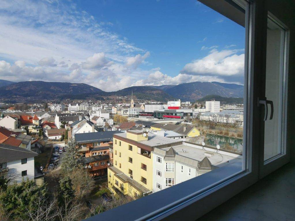 2-Zimmer-Wohnung Villach-Zentrum Lage: Die Wohnung befindet sich im 8. Stock mit Lift (auch barrierefrei erreichbar) mit einer tollen, unverbauten Aussicht auf die Drau und befindet sich nahe dem Rathausplatz und dem Drauufer. Schöner Ausblick mit verglaster Loggia. Die große Wohnhausanlage verfügt über 2 Lifte (einen kleinen und einen großen), perfekt für die Übersiedelung mit sperrigen Möbeln. Raumaufteilung: Vorraum, Bad mit barrierefreier Dusche, WC, Wohnzimmer und Schlafzimmer jeweils mit Ausgang auf die verglaste Loggia, neue Küche inkl. Geräten. Heizung und Warmwasser: ZH-Fernwärme. Möblierung/Ausstattung: Die Wohnung wird mit einer neuen Einbauküche mit allen Geräten übergeben. Saubere Pakettböden in den Zimmern. Zubehör: Zur Wohnung gehört ein Tiefgaragenplatz. Im Haus befinden sich diverse Ärzte. In wenigen Gehminuten ist das Stadtzentrum schnell zu erreichen. Sehr helle Wohnung mit einer wunderschönen Aussicht auf die Karawanken und die Drau. Das Haus wurde außen neu saniert (Fenster + Jalousien + Vollwärmeschutz) und hat daher einen sehr niedrigen Heizwärmebedarf.