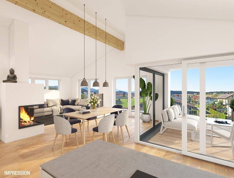 Zauberhaftes 3-Zimmer Dachetage im kleinen Wohnhaus mit viel Privatsphäre und Penthouse-Charakter: 109,28 m² Wfl. zzgl. 74,71 m² Dachterrasse. In dieser attraktiven Lage ist alles, was Sie im Alltag brauchen, fußläufig erreichbar: In ca. 6 Gehminuten sind Sie im Ortskern der Marktgemeinde Straßwalchen mit Nahversorgern, Cafés, Restaurants und vielem mehr. Dank guter S-Bahn- und Bus-Verbindungen kommen Sie auch mit den Öffis unkompliziert nach Salzburg oder ins nahe Seengebiet. Mit dem Lift gelangen Sie direkt in die clever geplante Penthouse-Wohnung mit dem XL-Wohn- und Loungebereich und luftiger Raumhöhe bis zu 4,7 m. Die schicke Küche mit Platz für eine Kochinsel lässt sich perfekt integrieren, außerdem könnte ein stimmungsvoller Kaminofen angeschlossen werden. Große Glas-Schiebeelemente öffnen sich zur umlaufenden, teilweise überdachte Dachterrasse, die zum Entspannen einlädt aber auch gerüstet ist für eine Party im Freundeskreis. Beide Schlafzimmer verfügen über einen Zugang zur Dachterrasse und haben ein Bad ensuite: vom luftigen Masterbedroom gelangen Sie in eine stilvolle Badoase mit Wanne und Dusche, vom harmonischen Kinderzimmer in ein praktisches Duschbad, ein Gäste-WC ist separat. Der nützliche Abstellraum bietet zusätzliche Staufläche. Die Heizung erfolgt über eine energieeffiziente Fußbodenheizung per Luftwärmepumpe, zum Parken sind sowohl Carport- als auch Freistellplätze vorgesehen.