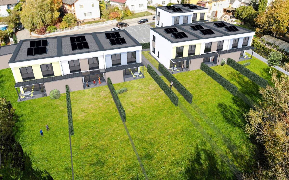 NADELBACH PARK 2 Doppelhaushälften: Haus 1: 124 m² Wohnfläche, 10 m² Terrasse, 84 m² Garten € 382.000 Haus 2: 123,6 m² Wohnfläche, 10 m² Terrasse, 183 m² Garten € 407.000 4 Reihenendhäuser Haus 3: 124,1 m² Wohnfläche, 10,3 m² Terrase, 265 m² Garten € 415.000 Haus 5: 124,1 m² Wohnfläche, 9,6 m² Terrasse, 219 m² Garten € 398.000 Haus 6: 124,1 m² Wohnfläche, 9,6 m² Terrasse, 258 m² Garten € 415.000 Haus 8: 124,1 m² Wohnfläche, 9,6 m² Terrasse, 297 m² Garten € 419.000 2 Reihenmittelhäuser: Haus 4: 124,1 m² Wohnfläche, 8,6 m² Terrasse, 147 m² Garten € 373.000 Haus 7: 124,1 m² Wohnfläche, 8,6 m² Terrasse, 177 m² Garten € 379.000 Es sind jeweils 2 KFZ-Abstellplätze inkludiert.
