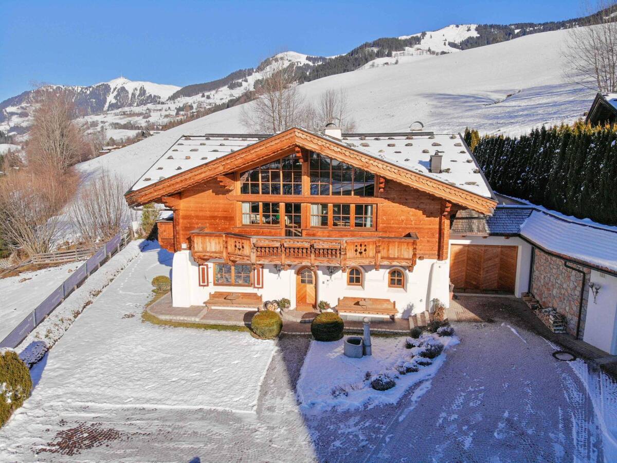 Diese Landhausvilla befindet sich in traumhafter Aussichtslage auf einem Sonnenplateau ganz in der Nähe von Kitzbühel. Die Immobilie erstreckt sich auf ca. 461 m² Gesamtfläche über drei Etagen und bietet unter anderem eine große Doppelgarage mit direktem Zugang zum Haus, einen Aufzug, einen offenen Kamin / Kachelofen, einen offenen Sichtdachstuhl, 4 Schlafzimmer, 3 Badezimmer, einen Wellnessbereich mit Sauna, Tiroler Bauernstube, drei herrliche Terrassen, Weinlager, Alarmanlage und ein neues Schindeldach, welches vor ca. 3 Jahren erneuert wurde. Das besondere Highlight der Liegenschaft stellt das Dachgeschoss dar. Der Sichtdachstuhl, die zahlreichen Fensterfronten mit herrlichem Panoramablick sowie die voll ausgestattete Profiküche mit modernsten Geräten aus dem Jahr 2018 (2 Weinkühlschränke, Edelstahl-Doppelkühlschrank etc.) machen den riesigen und lichtdurchfluteten Wohn-/Essbereich zu etwas ganz Besonderem. Energieangaben sind in Arbeit.