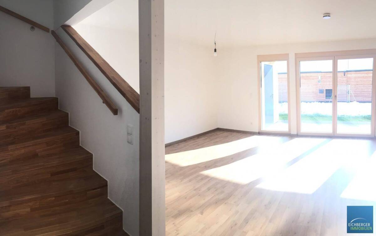 Modernes Reihenhaus in ökologischer Niedrigenergiebauweise und bewährter HARTL HAUS Qualität errichtet. Wohnbauförderung möglich!Es werden im 2ten Bauabschnitt 8 Reihenhäuser errichtet. Die 9 bereits errichteten Häuser werden bereits bewohnt, die Rückmeldungen der Bewohner sind durchgehend positiv!Fertigstellung voraussichtlich Ende Februar 2021 - weiterer Bauabschnitt Fertigstellung Herbst 2021Top moderne Ausstattung:• Wohnnutzfläche 114,26 m² / großes, sonniges Wohnzimmer, Tischlerküche, Abstellraum, WC und Technikraum. 3 Zimmer und Badezimmer mit Wanne und Dusche im OG • Luft-Wasser-Wärmepumpe inkl. Fußbodenheizung und Kühlfunktion • Photovoltaikanlage mit 2,12 kWp • 2 Autoabstellplätze pro Wohneinheit • überdachte Terrasse, Garten mit GeräteraumFinanzierung bereits ab ca. € 1.000,- möglich.Finanzierungsberechnung basiert auf Wohnbauförderung für Jungfamilie mit 2 Kindern und € 70.000,- Anzahlung. Eine genaue Berechnung erfolgt durch den Bankberater und ist abhängig von der Bonität des Kunden.Die Fotos zeigen Aufnahmen der bereits fertiggestellten Häuser.Infrastruktur / EntfernungenGesundheit Arzt <500m Apotheke <1.000m Klinik <1.000m Krankenhaus <1.500m Kinder & Schulen Schule <500m Kindergarten <1.500m Universität <500m Höhere Schule <1.500m Nahversorgung Supermarkt <1.000m Bäckerei <1.000m Einkaufszentrum <1.500m Sonstige Geldautomat <1.000m Bank <1.000m Post <1.000m Polizei <1.000m Verkehr Bus <500m Autobahnanschluss <2.000m Bahnhof <1.000m Flughafen <4.500m Angaben Entfernung Luftlinie / Quelle: OpenStreetMap