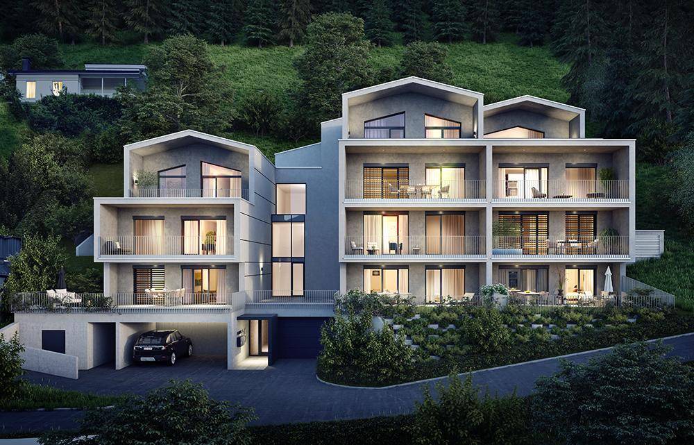 Wohngenuss in modernem Stil Im südöstlichen Stadtteil von Schwaz liegt der Pirchanger, der sich vom Kerngebiet der Stadt bis zu den Wäldern erstreckt. An dessen Ende befindet sich unser Projektstandort, umgeben von einer lockeren Bebauung mit Ein- und Mehrfamilienhäusern. Das Wohnhaus besteht aus zwei verbundenen Wohnelementen. In der geschlossenen Tiefgarage befindet sich ein großzügiger Fahrradraum und die Kellerabteile. Es entstehen 2-, 3- und 4-Zimmer Wohnungen sowie eine Penthousewohnung im Dachgeschoß. Alle Einheiten sind direkt vom Stiegenhaus barrierefrei zugänglich und verfügen über Sanitäranlagen, die ebenfalls anpassbar barrierefrei ausgeführt werden. Die überdachten Freibereiche sind talseitig orientiert und bieten einen Blick über die Dächer von Schwaz, das Inntal und Karwendelgebirge. Das Gebäude wird in Massivbauweise mit einer silberschimmernden Fassade ausgeführt, die Bezug auf die Silberstadt Schwaz nimmt. Umgeben von Grün mit Panoramablick Schwaz ist ein beliebter und bekannter Ausgangspunkt für Sport- und Erholungsmöglichkeiten wie Wanderungen, Mountainbiketouren und Ausflüge. In der Altstadt finden sich neben einigen Sehenswürdigkeiten auch charmante Plätze zum Verweilen und verwinkelte Gassen für spontane Entdeckungstouren. Die Nahversorgung für die Bewohner ist in den Stadtgalerien Schwaz vielfältig. Mit über 40 Shops, kostenlosen Parkmöglichkeiten und kundenfreundlichen Öffnungszeiten, lassen sich tägliche Erledigungen mühelos umsetzen. Ein umfangreiches Ausbildungsangebot für Kinder, Jugendliche und Erwachsene, macht Schwaz zu einer Bildungsstadt. Zudem wird eine bedarfsgerechte Bereitstellung an Kindergärten und Altersheimplätzen ermöglicht. Abgerundet werden die umfangreichen Kultur-, Sport- und Bildungsangebote durch eine Vielzahl an umgesetzten Projekten in den letzten Jahren, wie dem neu gestalteten Familien- und Erlebnisschwimmbad oder der Modernisierung zahlreicher Parkanlagen im gesamten Schwazer Wohngebiet.