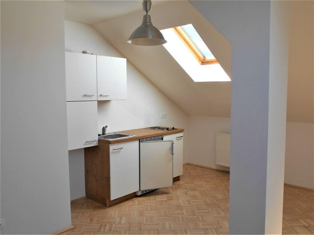 Heimelige Single-Wohnung im Dachgeschoß, Küchenblock vorhanden, Bad mit Dusche und Fenster. Die Dachschrägenfenster geben der gemütlichen Wohnung einen einzigartigen Flair.