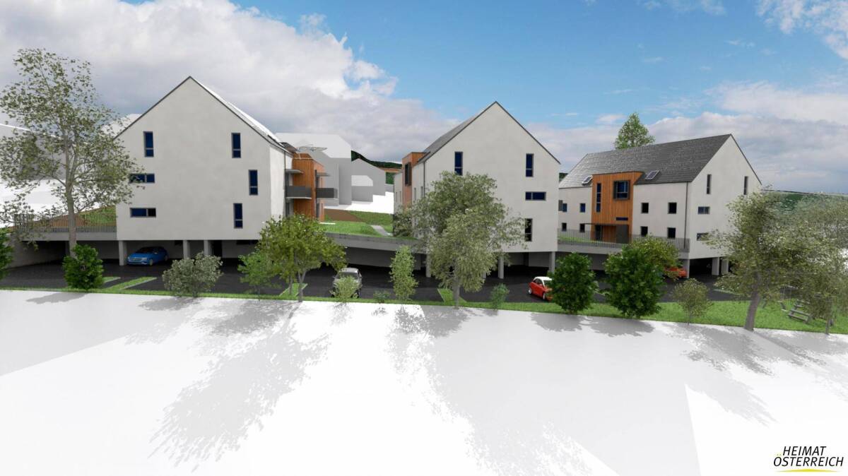 26 geförderte Mietwohnungen mit Kaufoption nach 5 JahrenAuf dem Grundstück werden 3 Wohnhäuser in Niedrigenergiebauweise errichtet. Die Wohnungen werden hochwertig ausgestattet, sind durch den eingebauten Lift im Stiegenhaus barrierefrei erreichbar und können ab dem Frühjahr 2021 schlüsselfertig bezogen werden.Das Angebot reicht von Kleinwohnungen bis hin zu familienfreundlichen 4-Zimmer-Wohnungen. Die Grundrisse der Wohnungen sind so konzipiert, dass durch Zusammenlegung von Bad und WC barrierefreie Wohneinheiten angeboten werden können.Im Erdgeschoss verfügen die Wohnungen über vorgelagerte Terrassen mit Eigengarten, in den oberen Geschossen über Balkone oder Dachterrassen.In den Wohn- und Schlafräumen wird ein Parkettboden verlegt; Abstellraum, Vorraum, Bad und WC wird verfliest.Öffentliche Einrichtungen wie Gemeinde, Kindergarten, Volkschule, Kirche, usw. befinden sich im näheren Umfeld und sind fußläufig erreichbar.Die Wohnung im ersten Obergeschoss hat eine Wohnnutzfläche von 77,57 m² besteht aus einem Wohnzimmer, zwei Schlafzimmern, Nebenräumen samt Zubehör, einem Balkon mit ca. 8,86 m² und einem Kellerabteil. Zusätzlich ist der Wohnung ein überdachter PKW-Stellplatz zugewiesen.Die Wohnung besticht durch ihre perfekte und gut durchdachte Raumaufteilung.Das Wohnzimmer mit gut integrierter Kochnische, bietet genug Platz für die ganze Familie. Auf dem gemütlichen Balkon lässt es sich herrlich entspannen.Die beiden weiteren Zimmer sind räumlich, aufgrund von Abstellraum, Vorzimmer, Bad und WC, sehr gut vom Wohnzimmer abgetrennt.Die monatliche Miete beträgt ca. € 686,58 der Finanzierungsbeitrag ca. € 26.113,94.Der Finanzierungsbeitrag ist vor Bezug der Wohnung zu leisten (gesonderte Zahlungsvereinbarungen wären möglich). Bei Auszug erhält der Mieter den Finanzierungsbeitrag abzüglich 1% Verwohnung pro Jahr wieder retour.In den monatlichen Kosten sind der Betriebskostenanteil und die Kosten für den PKW-Stellplatz bereits enthalten. Die Kosten für Heizung, Wasser und Strom werden verbrauchsabhängig abgerechnet.Da die Wohnhausanlage gefördert errichtet wird, besteht die Möglichkeit um einen monatlichen Wohnzuschuss beim Land NÖ an zu suchen. Die Höhe des Zuschusses ist abhängig von der Personenanzahl, welche die Wohnung beziehen wird und von deren Einkommen.HWB: ca. 19,1 kWh/m²a fGEE: ca. 0,73Die Fertigstellung ist im Frühjahr 2021 geplant.Infrastruktur / EntfernungenGesundheit Arzt <3.850m Apotheke <3.950m Krankenhaus <7.475m Kinder & Schulen Schule <1.025m Kindergarten <1.025m Universität <5.575m Nahversorgung Supermarkt <3.475m Bäckerei <4.450m Einkaufszentrum <5.350m Sonstige Bank <1.025m Geldautomat <1.025m Post <3.775m Polizei <4.025m Verkehr Bus <575m Bahnhof <3.325m Angaben Entfernung Luftlinie / Quelle: OpenStreetMap