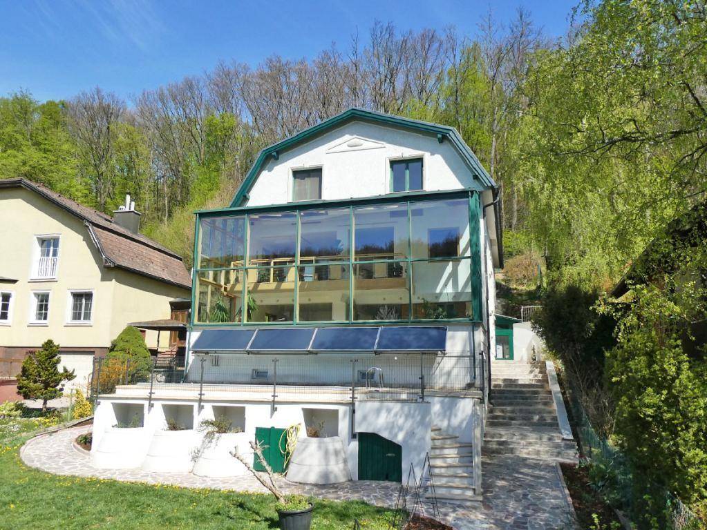 Erd-/Kellergeschoß: Eingangsbereich, Erdkeller, Kellerstüberl, Haustechnik, WC, Badezimmer, großzügiger Wohnraum oder Fitnessbereich Obergeschoß: 2 Vorräume, Abstellraum, Zimmer, Bad/WC, Wohnzimmer mit Balkon zum Wintergarten und offener Küche, Kachelofen Fa. Hallach, Luftraum ins Erdgeschoß, Westterrasse mit Gartenabgang Dachgeschoß: Vorraum, Bad/WC, 4 Zimmer, Schrankraum Grundflächen: 773 m² im Wohngebiet, 1.125 m² angrenzende Waldparzelle Bj. 1974-1983, Ziegelmassivbauweise, Renovierung, Zubauten und Ergänzungen zw. 2000 und 2006, Alarmanlage beheizbares Schwimmbecken mit Gegenstromanlage, Gaszentralheizung kombiniert mit Solaranlage; Holz-Alufenster mit 3-fach Verglasung, Außenrollos und Insektenschutzgittern Die nach Südwesten ausgerichtete Liegenschaft liegt keine 2 km außerhalb der Wiener Stadtgrenze im Mauerbacher Ortsteil Kreuzbrunn. Einkaufsmöglichkeiten, Ärzte sowie Kindergarten, Volksschule und Hort befinden sich in der Nähe und sind leicht zu Fuß, aber auch mit dem Bus schnell erreichbar. Eine Bushaltestell liegt quasi vor dem Gartentor, die Regionalbuslinie 450 bietet regelmäßige Verbindungen bis zum Bahnhof Hütteldorf, aber auch eine direkte Schulbusverbindung zu den Schulstandorten in Purkersdorf, Tullnerbach und Pressbaum. Das Auhofcenter mit seinem großen Einkaufs- und Unterhaltungsangebot und einem Ärztezentrum sowie die Auffahrt Auhof zur Westautobahn liegen etwa 6 km entfernt. Mit dem Bau des auf der Bauland-Parzelle befindlichen Einfamilienhauses wurde etwa 1974 begonnen, die ursprüngliche Fertigstellung erfolgte jedoch erst im Jahre 1983. Ab dem Jahre 2000 wurde von den derzeitigen Eigentümern mit der Erweiterung um ein Dachgeschoß, der Renovierung und dem Zubau des Wintergartens begonnen, zuletzt erfolgte im Jahr 2006 der Bau des Garagenhauses. Das lichtdurchflutete Einfamilienhaus bietet nun 270 m² Wohnfläche verteilt auf drei Etagen, den Teilkeller, ein beheizbares Außenschwimmbecken mit Gegenstromanlage, eine nach Westen ausgerichtete Terrasse mit südländischem Flair, einen ebenen, gepflegten Südgarten sowie zwei direkt durch den Nordgarten erreichbare, private Waldparzellen. Für Rückfragen oder einen unverbindlichen, gemeinsamen Besichtigungstermin steht Ihnen Frau Mag. Irene Dräxler gerne unter 0664 / 99 312 48 zur Verfügung. Es gelten die allgemeinen Geschäftsbedingungen und die Verordnung für Immobilienmakler des BM für Handel, Gewerbe und Industrie, BGBl. 297/1996. Der Ordnung halber weisen wir Sie darauf hin, dass wir Ihnen im Falle eines Kaufabschlusses ein Erfolgshonorar von 3 % des Kaufpreises zuzüglich 20 % gesetzlicher MwSt. verrechnen werden.Angaben gemäß gesetzlichem Erfordernis: Heizwärmebedarf: 76.0 kWh/(m²a) Klasse Heizwärmebedarf: C Faktor Gesamtenergieeffizienz: 0.94 Klasse Faktor Gesamtenergieeffizienz: B