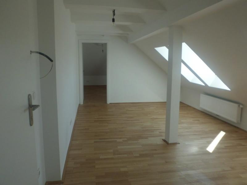 Renovierte Zweiraumwohnung im Dachgeschoß,bestehend aus Wohnzimmer,Schlafzimmer,unmöblierter Küche, Bad mit Dusche und WC,Vorraum. Sehr gute Infrastruktur. Parkplätze vorm Haus.