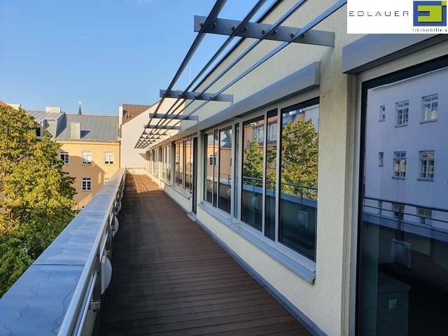 An einem der schönsten und zentralsten Plätze von St. Pölten wird eine Dachgeschoßebene im Ausmaß von insgesamt ca. 330 m² zuzüglich rund 70 m² Dachterrasse zur Vermietung angeboten. Mietfläche: Die Mietfläche wurde 2010 erbaut mit einer Fläche von rund 320 m² laut Plan sowie einer Terrasse mit ca. 70 m². Derzeit ist das Büro in 5 Büroräume mit einer Fläche von 17 bis 82 m² unterteilt. Auf Grund der Bauweise ist eine individuelle Raumgestaltung auch im Nachhinein gut möglich. Ebenso stehen ein Besprechungsraum, zwei Lagerräume, ein Sozialraum mit Küche sowie 4 WC´s zur Verfügung Ausstattung: Die Einheit verfügt über folgende Ausstattung - stufenlose Erreichbarkeit - flexible Raumunterteilung auch im Nachhinein möglich - außenliegender Sonnenschutz - Doppelboden - Klimatisierung vorhanden - Terrasse von allem Büroräumen aus erreichbar - komplette Etage zur exklusiven Nutzung - optional kann eine Lagerfläche mit 23 m² im Kellergeschoss angemietet werden. Lage: Perfektes Arbeits- und Repräsentationsumfeld im historischen Stadtzentrum, durch die Nähe zum Hauptbahnhof mit öffentlichen Verkehrsmitteln leicht erreichbar und für den Individualverkehr befindet sich die Rathaus-Tiefgarage praktisch vor der Haustür. Das historische Stadtzentrum schafft ein besonderes Flair und überzeugt insbesondere mit perfekter Infrastruktur durch die Nähe zu öffentlichen Einrichtungen, die Nahversorgungsmöglichkeiten und entspannten Atmosphären in Cafés und Schanigärten. Die Lage im neu ausgebauten Dachgeschoß ermöglicht konzentriertes Arbeiten in Ruhe über der geschäftigen Betriebsamkeit auf den darunterliegenden Straßen und Plätzen. Mietkonditionen: - Hauptmietzins wertgesichert, zuzüglich 20 % USt. - Betriebskosten-aconto monatlich netto ca. Euro 1,60 / m² zuzüglich 20 % USt. - Aufzug-aconto monatlich netto ca. Euro 0,30 / m² zuzüglich 20 % USt. - Heiz- und Kühlkosten bei ca. Euro 1,00 / m² zuzüglich 20 % USt. - Vorzugsweise mittel- bis langfristige Mietverhältnisse Nebenkosten: - Kaution Euro 16.000,00 - Vergebührung: abhängig von vereinbarter Mietdauer - Vermittlungsprovision Gerne stehen wir Ihnen für die Vereinbarung eines unverbindlichen Besichtigungstermines zur Verfügung.