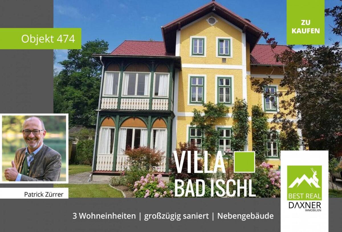 Jahrhundertwende Villa sowie ein weiteres Wohnhaus auf einem repräsentativen Grundstück am Ortsrand von Bad Ischl.Die Villa wurde im Jahre 1894 grundsolide und massiv erbaut und ebenso aufwändig und großzügig seit dem Jahre 2014 laufend saniert. Luftwärmepumpe, Fenster, Dach, Fassade, Bäder, Böden...Da, wo damals die Herrschaften residierten, könnte schon bald Ihr neues Zuhause in Bad Ischl sein. Auch besteht hier die Möglichkeit, einen Firmensitz im Nebengebäude, welches 1906 erbaut wurde, zu gründen.Das ebene und gepflegte Grundstück umfasst eine Fläche von insgesamt über 1.290m². Darauf finden sich das Haupthaus / Villa mit einer Nutzfläche von ca. 260m² verteilt auf 3 Etagen, dem Nebengebäude mit 2 Etagen und einer Nutzfläche von ca. 140m².In der Villa selbst besteht auch die Möglichkeit, mit überschaubarem baulichen Aufwand, 3 voneinander unabhängige Wohneinheiten zu etablieren.Zahlreiche Räume in beiden Gebäuden wurden bereits saniert und laufend werden Adaptierungen vorgenommen. Versorgt werden die Gebäude mittels einer Luftwärmepumpe, Kachelöfen bzw. einer Öl-Zentralheizung und Gas-Einzelöfen.Eine Garage, Carportstellplätze, eine Werkstatt und ein Gartenpavillon runden dieses außergewöhnliche Anwesen ab.Der Ortskern von Bad Ischl ist in nur 10 Gehminuten zu erreichen.Detaillierte Informationen finden Sie natürlich auf Best-Real.atSehr gerne stehe ich für weitere Fragen und Besichtigungen jeder Zeit zur Verfügung.Ein Zweit- oder Ferienwohnsitz ist im Haupthaus möglich!