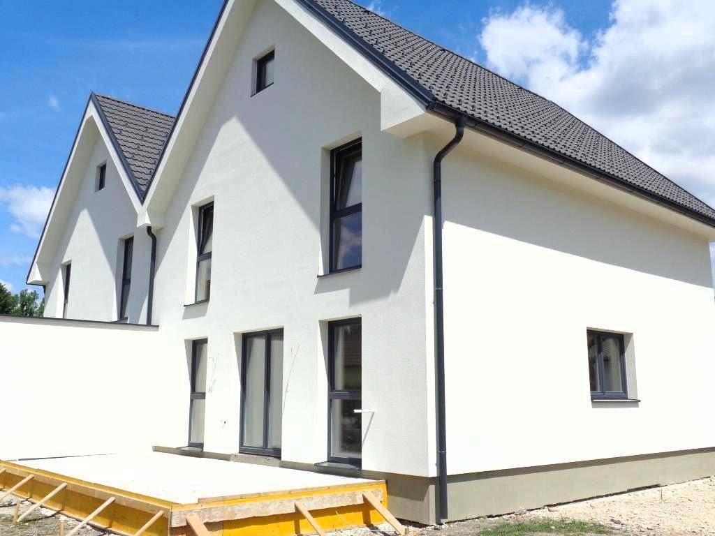 3 Doppelhäuser mit insgesamt 6 Wohneinheiten werden hier errichtet (Nähe Ebreichsdorf). Den Eigentümern wird ein familienfreundliches Umfeld in ruhiger Lage geboten. Bei uns steht Qualität und Wohnkomfort an erster Stelle. TOP 5 - Bauphase 1 - bereits errichtet BESICHTIGUNGSTERMIN vereinbaren!! Einfamilienhaus mit einer Wohnfläche von ca. 127 m² auf zwei Ebenen - Grundstücksgröße ca. 235 m² EG: Trendiges Raumkonzept mit großzügigem Wohn-, Essbereich mit offener Küche (ca. 50 m²), lichtdurchfllutet, direkter Ausgang auf die Terrasse (ca. 22 m²), Gäste WC und HWR (Technik mit Waschmaschinenanschluss), ansprechender Eingangsbereich, Stauraum unter Treppe/AR/Lager, Luftwärmepumpe mit Fußbodenheizung OG: 3 großzügige Zimmer, 1 Badezimmer (Wanne/Dusche/Doppelwaschbecken/WC integriert), Diele Dachboden: mit einer Fläche von ca. 40 m² Bereits errichtet - Übergabe nach Vereinbarung Kaufpreis: € 349.000,-- Doppelhaushälfte in belagsfertiger Ausbaustufe inkl. zwei Autoabstellplätzen, Terrasse, Trennwand zum Nachbarn und Einzäunung (lt. Folder) • Die Wohnbauförderung ist ein zurückzuzahlendes Darlehen, auf das kein Rechtsanspruch besteht. Es gelten die jeweiligen Bedingungen und Auflagen des Fördergebers. • zzgl. Erschließungskosten ca. € 25.000,-- und Anschlusskosten (Wien Energie, etc.) PROVISIONSFREI für den KÄUFER Jedes Haus wird durch einen gerichtlich beeideten Sachverständigen baubegleitet und abgenommen. Gute Infrastruktur im Ort - Nahversorger, Kindergarten und Volksschule, Ärzte. Öffentliche Verkehrsanbindungen - Bushaltestelle, Schnellbahn in Gramatneusiedl - ca. 15 Minuten am Hauptbahnhof bzw. via PKW in Wien.Angaben gemäß gesetzlichem Erfordernis: Heizwärmebedarf: 33.0 kWh/(m²a) Klasse Heizwärmebedarf: B Faktor Gesamtenergieeffizienz: 0.72 Klasse Faktor Gesamtenergieeffizienz: A