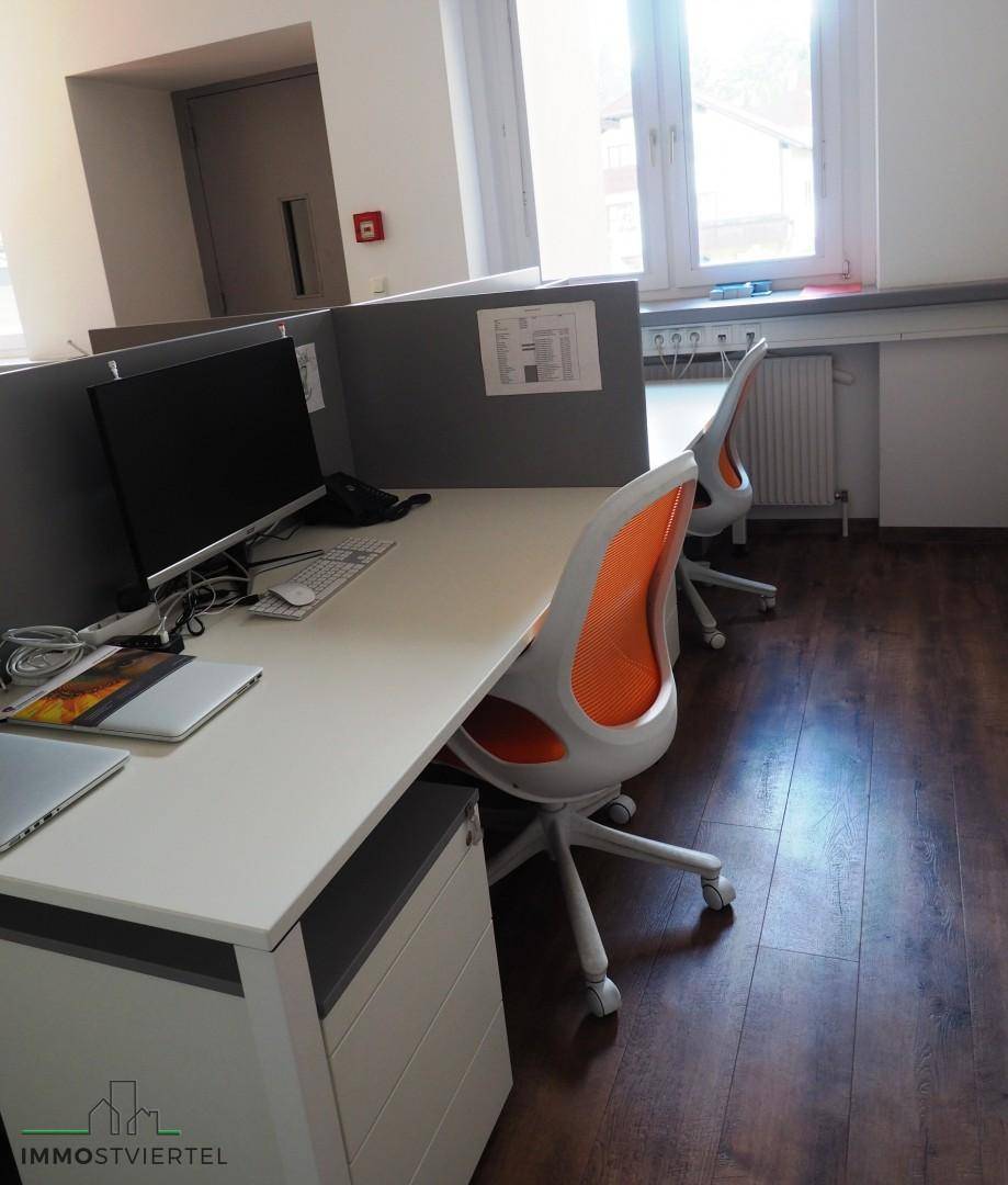 In diesem Shared Office Büro wird Ihnen alles geboten, was Sie von einem Büro Arbeitsplatz erwarten. • Jeder Schreibtisch mit Strom und Internetanschluss • Vergrößerbar bis hin zum eigenen Büro • Teeküche mit Kaffeemaschine • zubuchbarer Besprechungsraum • WC für Damen und Herren Im monatlichen Mietpreis von 120,-€ ist inkludiert: Miete, Betriebskosten, Strom, Heizung, Internetanbindung mit Glasfaser, WC. Bestens geeignet für "Start ups" , Jungunternehmer oder denen das Home Office schon zu eng wird. Bei Bedarf kann auch eine eigene Telefonleitung mit Sekretärin zur Weiterleitung eingehender Anrufe gebucht werden! Alternativ kann das kpl.Büro mit allen 8 Plätzen um 400,-€ netto gemietet werden!Infrastruktur / EntfernungenGesundheit Arzt <500m Apotheke <1.000m Kinder & Schulen Schule <1.000m Kindergarten <1.000m Universität <7.000m Nahversorgung Supermarkt <1.000m Bäckerei <1.000m Einkaufszentrum <7.000m Sonstige Bank <1.000m Geldautomat <1.000m Post <1.000m Polizei <1.500m Verkehr Bus <500m Autobahnanschluss <4.000m Bahnhof <3.000m Angaben Entfernung Luftlinie / Quelle: OpenStreetMap