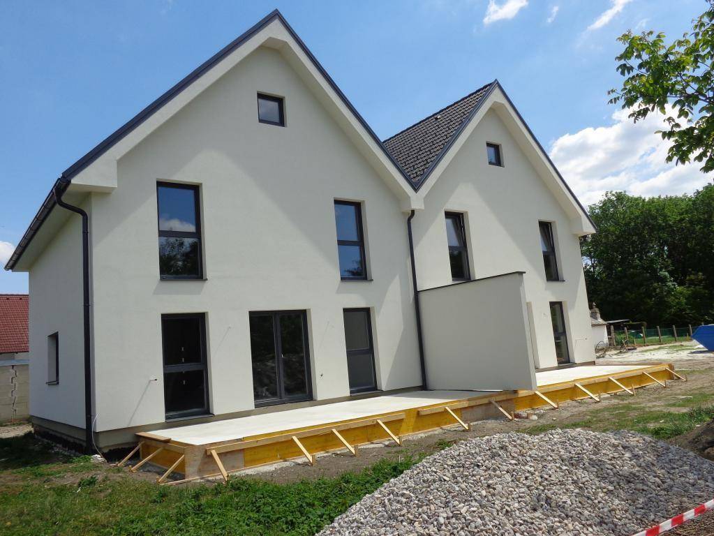 Hier werden in ruhiger Grünlage drei hochwertige Doppelhäuser mit genügend Platz für eine mehrköpfige Familie errichtet. Geräumig gestaltet um den Anforderungen von Jung und Alt zu entsprechen - da wo man gerne nach Hause kommt und die Freizeit in vollen Zügen geniessen kann - in Mitterndorf an der Fischa ca. 5 Min. von Gramatneusiedl entfernt. TOP 6 - Bauphase 1 - bereits errichtet Doppelhaushälfte mit einer Wohnfläche von ca. 127 m² auf zwei Ebenen - Grundstücksgröße ca. 308 m² EG: Modernes Raumkonzept mit großzügigem Wohn-, Essbereich mit offener Küche (ca. 50 m²), lichtdurchfllutet, direkter Ausgang auf die Terrasse (ca. 22 m²), Gäste WC und HWR (Technik mit Waschmaschinenanschluss), ansprechender Eingangsbereich, Stauraum unter Treppe/AR/Lager, Luftwärmepumpe mit Fußbodenheizung OG: 3 großzügige Zimmer, 1 Badezimmer (Wanne/Dusche/Doppelwaschbecken/WC integriert), Diele Dachboden: mit einer Fläche von ca. 40 m² Bereits errichtet - Übergabe nach Vereinbarung Kaufpreis: € 359.000,-- Einfamilienhaus in belagsfertiger Ausbaustufe inkl. zwei Autoabstellplätzen, Terrasse, Trennwand zum Nachbarn, Zäune • Die Wohnbauförderung ist ein zurückzuzahlendes Darlehen, auf das kein Rechtsanspruch besteht. Es gelten die jeweiligen Bedingungen und Auflagen des Fördergebers. • zzgl. Erschließungskosten ca. € 25.000,-- und Anschlusskosten (Wien Energie, etc.) PROVISIONSFREI für den KÄUFER Jedes Haus wird durch einen gerichtlich beeideten Sachverständigen baubegleitet und abgenommen. Gute Infrastruktur im Ort - Nahversorger, Kindergarten und Volksschule, Ärzte. Öffentliche Verkehrsanbindungen - Bushaltestelle, Schnellbahn in Gramatneusiedl - ca. 15 Minuten am Hauptbahnhof bzw. via PKW Stadtgrenze Wien.Angaben gemäß gesetzlichem Erfordernis: Heizwärmebedarf: 34.0 kWh/(m²a) Klasse Heizwärmebedarf: B Faktor Gesamtenergieeffizienz: 0.73 Klasse Faktor Gesamtenergieeffizienz: A