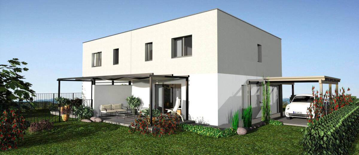 Doppelhaushälfte belagsfertige Ausstattung inclusive Grundanteil. Größen von 100 bis 140 m2. Ziegelmassivbauweise Wärmepumpenheizung 3 Scheibenverglasung mit Sonnenschutz individuelle Raumaufteilung