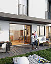 Das Büroobjekt RUND VIER besteht aus vier individuellen Gebäuden, die von den Architekten Henke und Schreieck als jeweils zwei einander zugewandte, sichelförmige Bauten geplant wurden. Die vier Gebäude des Objektes RUND VIER sind über ein durchgehendes Untergeschoß verbunden. Hier finden sich Lagerflächen sowie eine großzügig angelegte Tiefgarage mit insgesamt 274 PKW-Stellplätzen. Das VIERTEL ZWEI wurde um einen zentral gelegenen, ca. 5.000 m² großen See errichtet, wodurch eine sehr hohe Qualität der Außenanlage erzielt wurde. Von der Bürofläche hat der Mieter einen einzigartigen Blick Trabrennbahn.