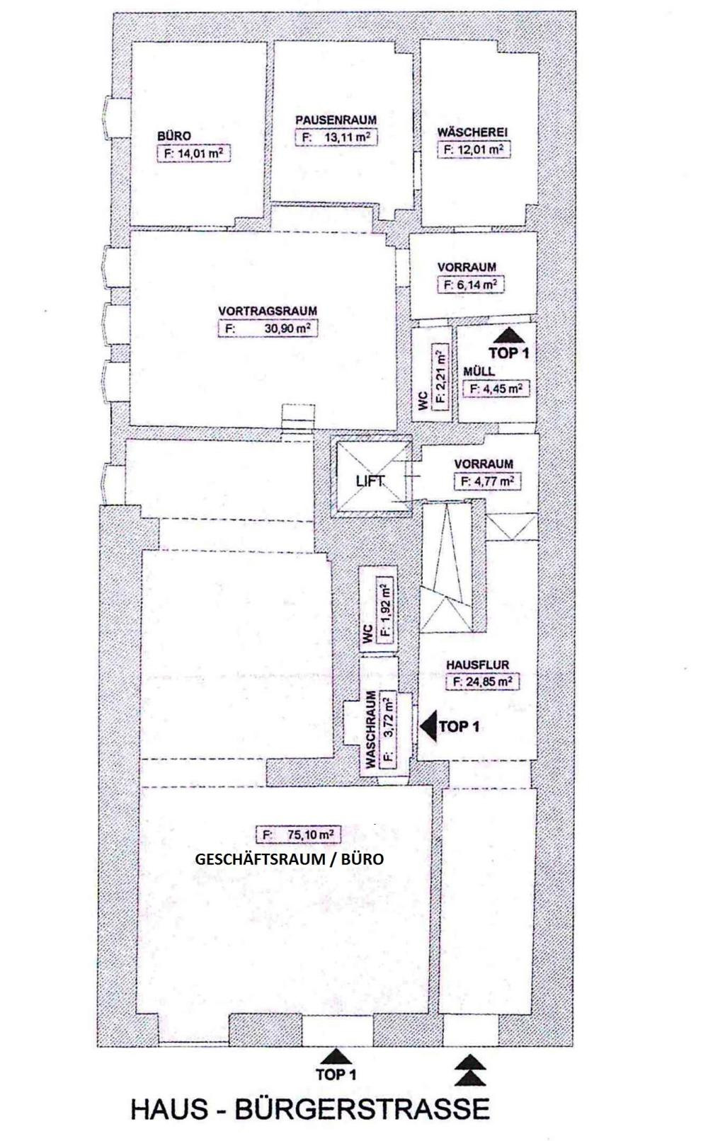 Zentrales Mehrparteienhaus in Innsbruck, Bürgerstraße! * geräumige Büro-/ Geschäftsräumlichkeiten im Erdgeschoss * großer Verkaufsraum (ca. 75,10 m²) * 4 Büros / Zimmer (je 12 m²; 13 m² , 14 m² & 31 m²) * 2 WC's vorhanden * ein Kellerabteil bietet zusätzlichen Stauraum * die Beheizung erfolgt mittels Gasetagenheizung - die diesbezüglichen Kosten trägt der Mieter direkt Der Energieausweis ist in Ausarbeitung Nebenkosten: Kaution: € 8.000,00, Honorar: € 7.526,09 inkl. 20 % MWST, Fa-Gebühr: € 1.354,70 (drei Jahre)