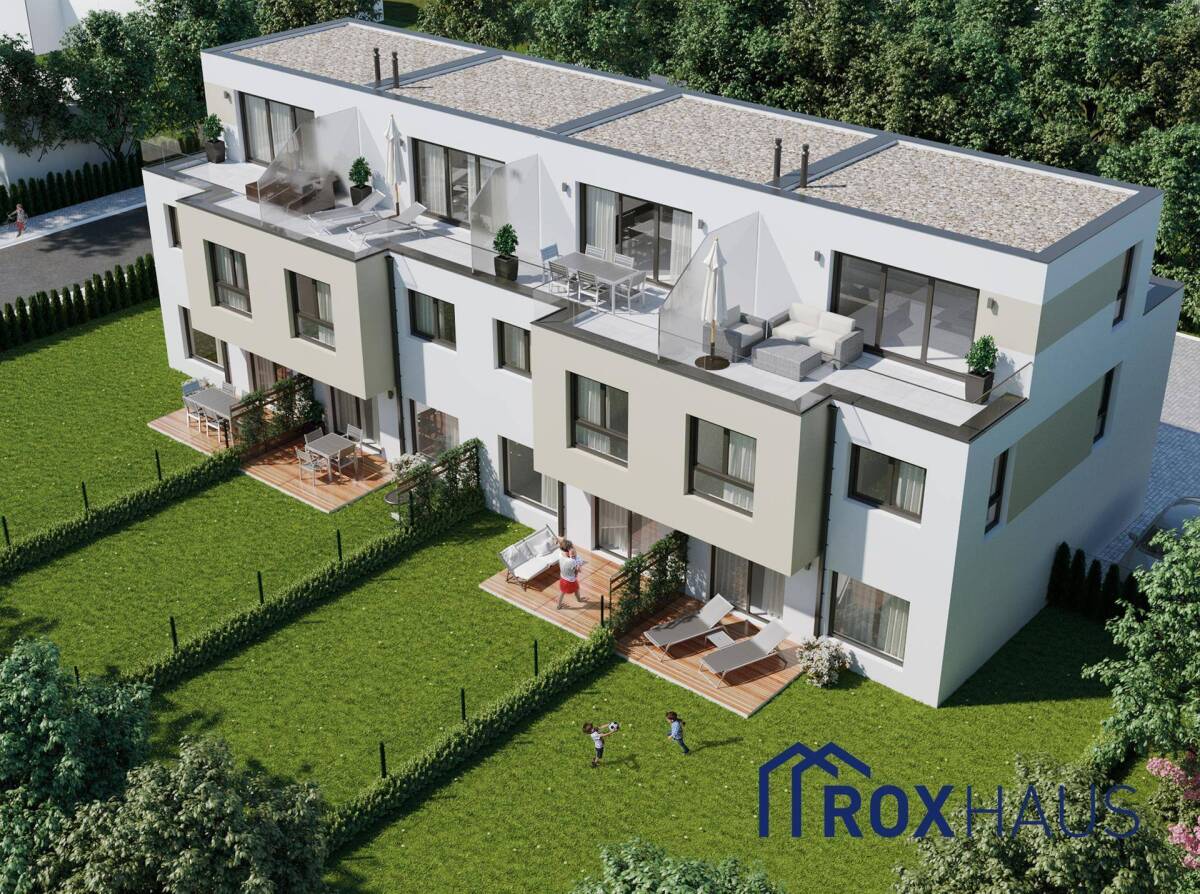 1220 Wien | Gernotgasse 22 | Haus 1 In absoluter Grün- und Ruhelage in Essling errichtet die ROX Gruppe eine exklusive Doppelhausanlage mit 4 Wohneinheiten in bester Ziegel-Massivbauweise. Alle Häuser sind dreigeschossig ausgeführt und voll unterkellert. Die Liegenschaft ist umgeben von Einfamilienhäusern, Gärten und Ackerland. Nur 3km entfernt beginnt bereits die Lobau als Freizeit- und Naherholungsgebiet. Besonderheiten: • Ziegel-Massivbau für bestes Raumklima und Beständigkeit • Beheizter Wohnkeller mit ca. 56m2 und Wasseranschluss • Eigengarten ca. 168m2; 2 Terrassen • Elektrisch gesteuerte Raffstores im ganzen Haus • Freier Kaminanschluss • Fußbodenheizung in allen Geschossen • Erstbezug • 1 PKW-Stellplatz inklusive Provisionsfrei - direkt vom Bauträger Ausstattungsmerkmale: • Exklusive Ausführung in Niedrigenergiebauweise • Fußbodenheizung im gesamten Haus • Moderne und effiziente Luft/Wasser-Wärmepumpe • Hochwertige 3-fach verglaste Kunstoff-Alu-Fenster vom Markenhersteller • Innenstiege betoniert und schalltechnisch entkoppelt • Zwei Terrassen mit Außenwasseranschluss • Hochwertige Vollunterkellerung inkl. Estrich, Heizung und bodenseitigem Wasseranschluss • Pflasterung der Zufahrtsstraße Individuelle Schlüsselfertigpakete gegen Aufpreis auf Anfrage! Interessiert? Nehmen Sie gerne Kontakt mit uns auf: Tel.: 01 375 00 17 // email: office@roxhaus.at // web: www.roxhaus.at ROX Development GmbH | 1010 Wien | Neutorgasse 2/4 Änderungen vorbehalten. Fertigstellung geplant Q1 2021
