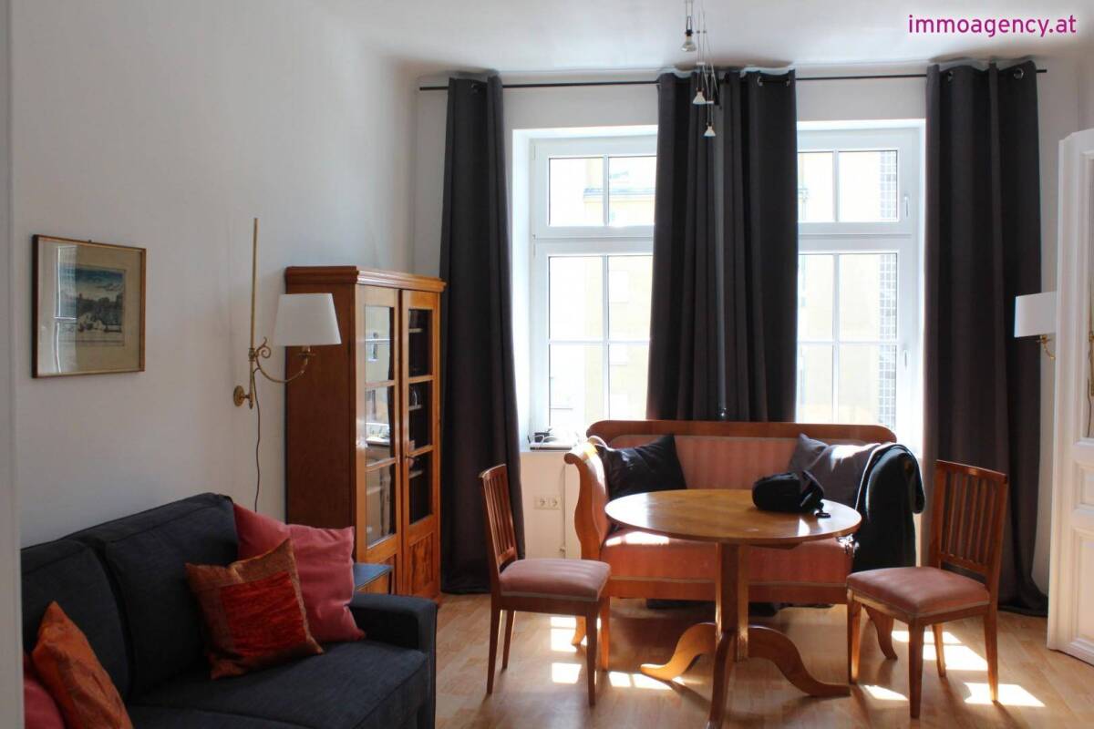 Koffer nehmen und einziehen. Das geht hier wirklich! Das Apartment ist vollständig eingerichtet und wurde bisher als Touristenapartment genutzt. Jetzt soll es für drei Jahre vermietet werden, wobei der Vermieter hier sehr flexibel ist.Das Apartment befindet sich im dritten Stockwerk (leider ohne Lift) eines mächtigen, aber sehr familiären Stadthauses. In der unmittelbaren Umgebung gibt es verschiedene Einkaufsmöglichkeiten für den täglichen Bedarf und die Anbindung an den öffentlichen Verkehr ist sehr gut. In wenigen Minuten bringt Sie die Linie 62 vor die Oper oder zum Karlsplatz, wo sich fast alle U-Bahnlinien treffen.Man betritt die Wohnung und steht zunächst in der kleinen, aber vollausgestatteten Küche. Durch eine alte Doppelflügeltür gelangt man ins Wohnzimmer, das mit einem Esstisch mit Stühlen, einer Geschirrvitrine mit Geschirr, einem Sofa und einem Fernsehgerät versehen ist. Neben der Küche ist das Bad mit WC, Badewanne und Waschtisch. Hinter dem Wohnzimmer, wieder durch eine schöne alte Doppelflügeltür zu erreichen, befindet sich schließlich das Schlafzimmer mit Doppelbett, einem kleinen Tisch zum Briefschreiben und einer schönen alten Kommode mit verglastem Aufsatz.Die Heizung ist eine moderne Elektroheizung, die Fenster sind neue Kunststoffisolierfenster, die Böden sind natürlich Parkett und im Bad Fliesen. Alle Zimmer, bis auf das Bad, haben Fenster und sind sehr schön hell. Das Wohnzimmer geht in einen Innenhof mit einem Ententeich, das Schlafzimmer ist straßenseitig, aber ruhig, weil die Straße wenig befahren ist.Wer schnell eine vollausgestattete Wohnung in guten Lage mit guter Infrastruktur sucht, wer den dritten Stock ohne Lift als Training und nicht als unüberwindbares Hindernis sieht und wem die flexible Mietdauer z.B. aus beruflichen Gründen wichtig ist, findet hier alles, was er sucht. Die Wohnung ist frei und kann sofort bezogen werden. Besichtigungstermine vergibt Herr Mag. Etienne Monnier unter 0699/ 1963 08 20 oder per mail unter monnier@immoagency.at