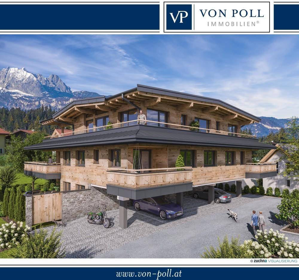 Inmitten von St. Johann in Tirol und dennoch sehr ruhiger und sonnenverwöhnter Lage entsteht dieser wunderschöne im Landhausstil geplante Neubau mit nur 4 Wohneinheiten. Sie erreichen das Dorfzentrum sowie alle Einkaufsmöglichkeiten innerhalb weniger Gehminuten. Auch der Skilift ist innerhalb weniger Gehminuten erreichbar. Die hier angebotene Wohnung befindet sich im 1. Obergeschoss und ist über den Personenaufzug oder das Stiegenhaus zu erreichen. Im Eingangsbereich verfügt die Wohnung über eine Garderobe. Der Wohnmittelpunkt als großzügigen offenen Wohn- und Essbereich ist nach Westen ausgereichtet. Von hier erreicht man den 13 m² großen Westbalkon, welcher zum Genießen und entspannen einlädt. Der Masterbereich verfügt über ein Schlafzimmer mit Zugang zum zweiten Balkon und einem Bad-en-Suite. Dieses bietet Platz für eine Dusche, ein Doppelwaschbecken und einen eigenen Bereich für eine Sauna. Neben diesem gibt es ein weiteres Schlafzimmer und ein zweites Duschbad. Zu den Ausstattungshighlights gehören u.a. Landhausdielenböden, hochwertige Bäder, Fußbodenheizung, Raffstore an Fenster und Türelementen und ein Kamin. Abgerundet wird diese tolle Wohnung mit einem Carportplatz und einem Außenstellplatz.