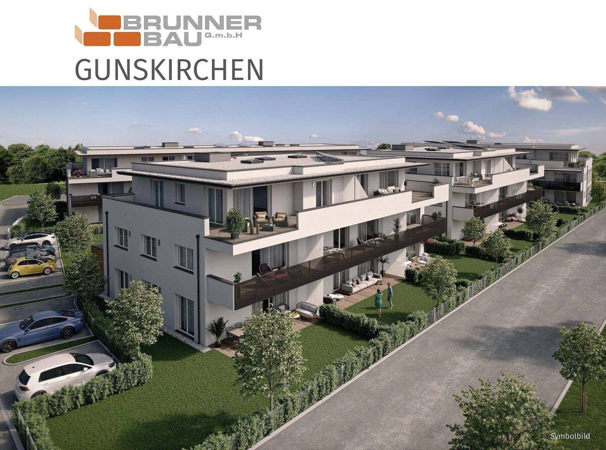 Gunskirchen | Lambacher Straße | Wohnung Top D8 Hochwertige Eigentumswohnungen in zentraler Lage mit Tiefgarage und Lift. Zentrumslage in Gunskirchen - alles zu Fuß erreichen Ziegelmassivbauweise in Niedrigenergiebaustandard süd- bzw. westseitige Ausrichtung der Wohnungen und Freiflächen für eine optimale Sonneneinstrahlung barrierefreie Erschließung durch einen Lift - von der Tiefgarage bis in die Wohnung 2 Abstellplätze pro Wohnung in der hauseigenen Tiefgarage bzw. direkt vor dem Gebäude, zusätzlich 9 Besucherstellplätze großzügige Freiflächen (Terrassen und Eigengärten im EG, Balkone und Dachterrassen in den Obergeschoßen) technisch wohl durchdachtes und mit hochwertigen Materialien ausgestattetes Wohnhaus Anschluss an die Fernwärme für die Heizung bzw. Warmwasserbereitung Photovoltaikanlage am Dach für eigenen "Grünstrom" traumhafte Dachterrassenwohnungen - "Zusperren und ungebunden sein"