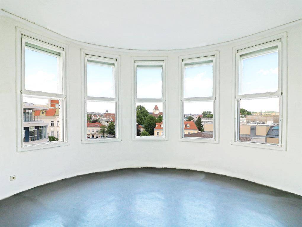 Der Galilei-Hof ist eines der markantesten Gebäude im Zentrum von Althietzing. Über das gepflegte Stiegenhaus mit zahlreichen Original-Jugendstil-Elementen gelangt man in das Dachgeschoss (3. OG). Zwei beeindruckende Atelierräume erstrecken sich hier über die beiden Hausflügel und münden im Zentrum in einen kreisförmigen Raum mit einem sensationellen Blick über den historischen Ortskern. Die beiden Atelierräume sind vom Stiegenhaus aus gesondert begehbar und lassen sich nach Bedarf verbinden, unterteilen oder als zwei getrennte Einheiten nutzen. Einer der Atelierräume wurde saniert (gegenwärtig noch im Rohzustand) und mit neuen Fenstern ausgestattet. Die großflächigen Original-Fenster der anderen Räume stellen ein besonderes Highlight dar. Heizung, Elektrik, und Installationen sowie einfache sanitäre Einrichtungen sind vorhanden. Die erforderlichen Bodenbeläge und sonstigen Adaptionen sowie gegebenenfalls der Einbau einer Küche können entsprechend den Bedürfnissen des Mieters durchgeführt werden. Bei diesem Jugendstil-Atelier handelt es sich um eine Rarität mit einem ganz besonderen Charme, das sich insbesondere für Kreative - z.B. auch für die Verbindung von Wohnen und Arbeiten - eignet oder für Unternehmen, die mit der Raumwahl ein Statement von Originalität und Kreativität verbinden. Die Konditionen werden entsprechend den erforderlichen Adaptionen vereinbart. Eine Befristung auf zunächst 3 Jahre ist angedacht.