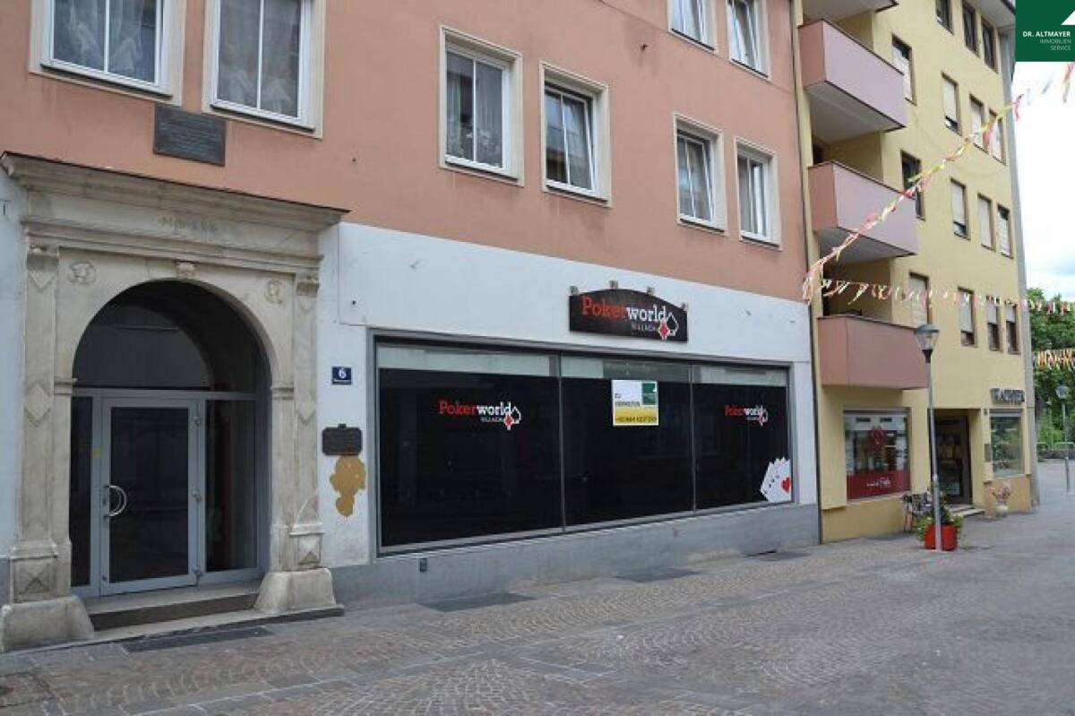 In direkter Innenstadtlage befindet sich diese großzügige Geschäftsfläche nur wenige Schritte von der Drau und dem Hauptplatz entfernt. Das Geschäft verfügt über einen großen Geschäftsraum mit großer Schaufensterfront, einen weiteren kleineren Verkaufsraum mit Zugang zu den Toiletten und den Abstellräumen sowie einen kleinen Lagerraum. Gute Erreichbarkeit durch die nahe gelegenen Parkplätz und den neuen gratis E-Citybus der direkt vor dem Geschäft vorbei fährt und nur wenige Meter entfernt eine Haltestelle hat. Eine Nutzung als Büro, Einzelhandel oder Gastronomie ist möglich.Für weitere Informationen fordern Sie bitte unser Exposé an!Infrastruktur / EntfernungenGesundheit Arzt <500m Apotheke <500m Klinik <1.000m Krankenhaus <1.000m Kinder & Schulen Schule <500m Kindergarten <1.000m Universität <3.000m Höhere Schule <3.500m Nahversorgung Supermarkt <500m Bäckerei <500m Einkaufszentrum <500m Sonstige Geldautomat <500m Bank <500m Post <500m Polizei <500m Verkehr Bus <500m Bahnhof <500m Autobahnanschluss <3.500m Angaben Entfernung Luftlinie / Quelle: OpenStreetMap