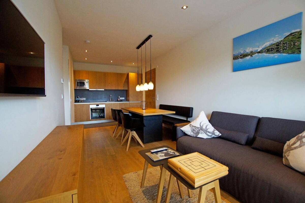 Diese moderne Erstbezugswohnung befindet sich in einer sonnigen und ruhigen Lage von Oberndorf in Tirol, direkt neben dem Skilift. Das Ortszentrum erreichen Sie in wenigen Minuten. Die hier angebotene Erdgeschosswohnung verteilt sich auf einer Wohn-/Nutzfläche von 65 m² in einen offenen Wohn-/Essbereich mit Einbauküche, zwei Schlafzimmer und zwei Badezimmer. Dank einer optimalen Raumaufteilung verfügen die Räumlichkeiten über eine angenehme Wohnatmosphäre. Vom Wohnbereich und den beiden Schlafzimmern aus gelangen Sie auf die nach Westen ausgerichtete Terrasse. Hier können sie beim Anblick der umliegenden Berge den Alltag hinter sich lassen und sich vollkommen entspannen. Diese Neubau-Immobilie wird vollmöbliert (inkl. Waschmaschine und Trockner) vermietet. Eine Fußbodenheizung sorgt für ausreichend Wärme an kalten Tagen. Ein allgemeiner Skiraum und zwei Freistellplätze runden dieses Angebot ab. In der Immobilie steht noch eine weitere Einheit zur Vermietung. Short Cuts: Wohn-/Nutzfläche 65 m², Schlafzimmer 2, Badezimmer 2, Erstbezug, ruhige und sonnige Lage, vollmöbliert – mit Einbauküche, direkte Skiliftnähe, Raffstores, Terrasse in westlicher Ausrichtung, allgemeiner Skiraum, zwei Stellplätze im Freien, Mietpreis € 2.000,- inkl. MwSt., zzgl. Betriebs- und Nebenkosten € 200,-, HWB* Nach Aufklärung über die ab 01.12.2012 geltende generelle Vorlagepflicht eines Energieausweises, sowie Aufforderung zu seiner Erstellung wurde uns dieser vom Eigentümer bzw. Verkäufer noch nicht vorgelegt. Es gelten unsere Allgemeinen Geschäftsbedingungen.