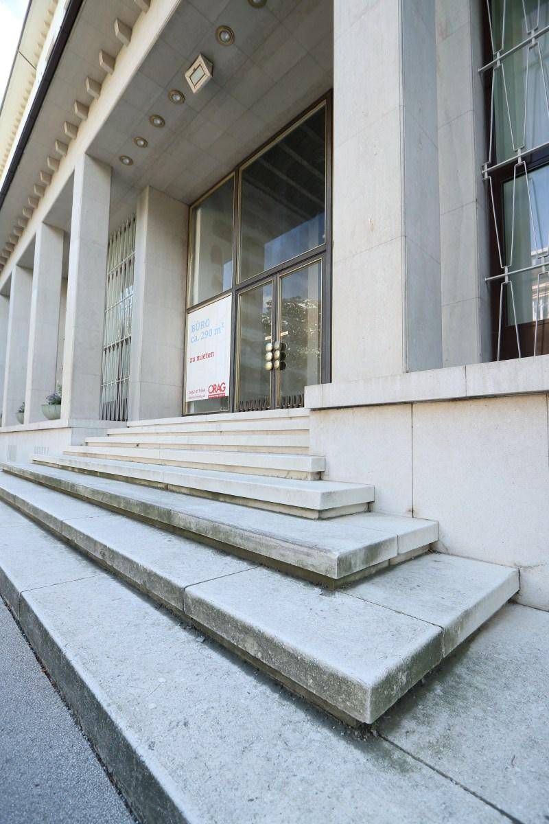 Im ehemaligen Gebäude der Österreichischen Nationalbank inmitten des Andräviertels befinden sich die gegenständlichen Büroräumlichkeiten im Erdgeschoß, welches über eine imposante Freitreppe erreicht wird. Der gesamte rechtsseitig gelegene Erdgeschoßbereich stellt die zu mietende Bürofläche dar. Aufgrund der ehemaligen Nutzung als Filiale der Österreichischen Nationalbank besteht die Möglichkeit, die noch notwendigen Umbaumaßnahmen zu nutzen und den zukünftigen Grundriß nach den eigenen Vorstellungen und den grundlegenden baulichen Gegebenheiten zu adaptieren. Die Trennung der kompletten Erdgeschoßfläche in zwei gänzlich unabhängige Einheiten (Strom, Wasser, Heizung) wurde inzwischen abgeschlossen und kann nunmehr auch der angebotene Gebäudeteil vermietet werden. Derzeit sind ein großzügiger Eingangsbereich (ehemalige Kassenhalle), 6-7 Büroräume und entsprechende Nebenräume (WC, Abstellraum, Kleinküche, Sozialraum, etc.) vorhanden. Von Seiten des Vermieters wird ein Zuschuß zu den Umbaukosten gewährt werden. Die Beheizung erfolgt zentral mittels Fernwärme. Der Ordnung halber wird festgehalten, dass ÖRAG Immobilien West GmbH als Doppelmakler tätig ist und mit dem Vermieter in regelmäßiger, geschäftlicher Verbindung steht.