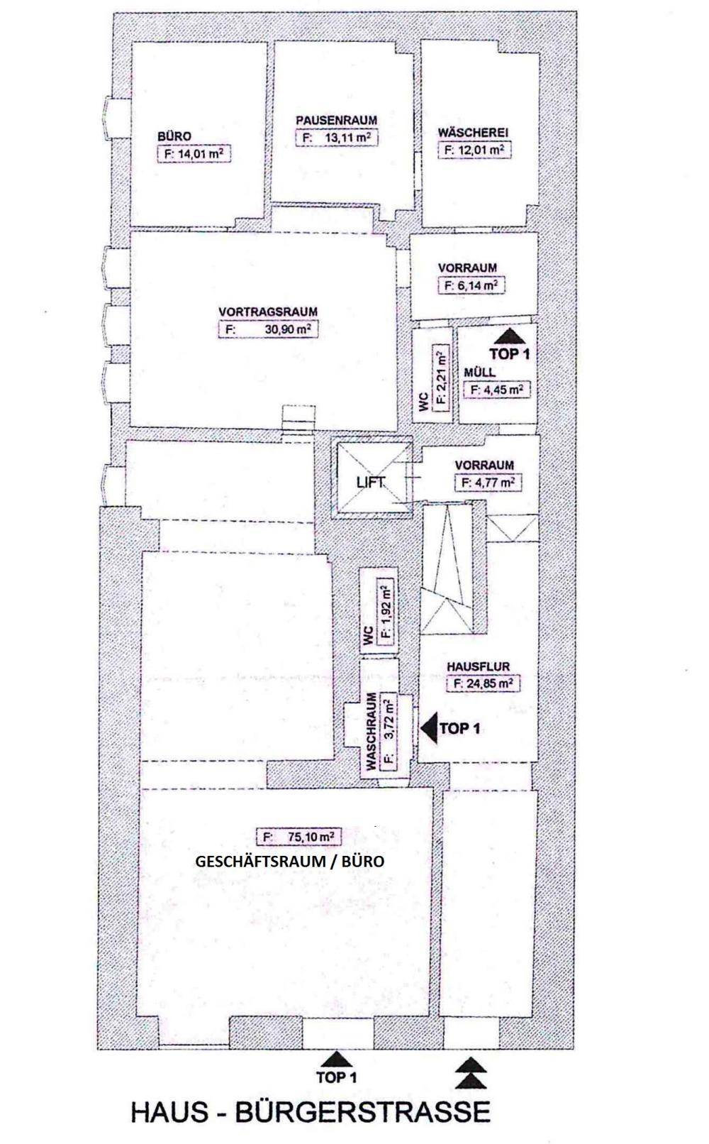 Zentrales Mehrparteienhaus in Innsbruck, Bürgerstraße! * geräumige Büro-/ Geschäftsräumlichkeiten im Erdgeschoss * Räume teilbar, sodass auch nur ein Teil angemietet werden kann * großer Verkaufsraum (ca. 75,10 m²) * 4 Büros / Zimmer (je 12 m²; 13 m² , 14 m² & 31 m²) * 2 WC's vorhanden * ein Kellerabteil bietet zusätzlichen Stauraum * die Beheizung erfolgt mittels Gasetagenheizung - die diesbezüglichen Kosten trägt der Mieter direkt Es besteht die Möglichkeit in einer Tiefgarage in der Nähe zwei Tiefgaragenabstellplätze anzumieten. Der Energieausweis ist in Ausarbeitung Nebenkosten: Kaution: € 9.500,00, Honorar: € 6.450,29 inkl. 20 % MWST, Fa-Gebühr: € 1.161,05 (drei Jahre)