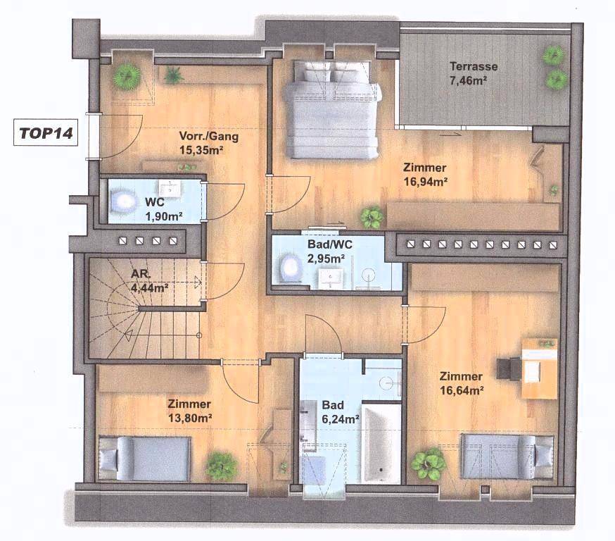 Das traumhafte Terrassenpenthouse in sehr beliebter und verkehrsgünstiger Lage in Gersthof. Dieses komplett neu errichtete Terrassenpenthouse befindet sich im neu ausgebauten Dachgeschoss eines sehr repräsentativen, sockelsanierten Stilaltbaus und besticht mit einem sehr großzügigen Grundriss und einer äusserst exklusiven Ausstattung. Das einzigartige und im Grundriss optimale Raumkonzept ermöglicht eine kompromisslose Wohnkultur für einen gehobenen Anspruch! Die Wohnung besteht aus einem herrlichen, lichtdurchfluteten Wohnraum mit integrierter Küche (Wohnküche, alle Anschlüsse) und der davor liegenden, unteren Terrasse. Über eine großzügige Treppe gelangt man auf die tolle Dachterrasse, ca. 23 m², welche in den Innenhof ausgerichtet ist und einen traumhaften Panorameblick ermöglicht. Im unteren Bereich der Wohnung befinden sich 3 traumhafte Zimmer, wovon das Masterbedroom über ein eigenes Badezimmer, sowie über eine Terrasse verfügt, ein weiteres Badezimmer mit Wanne, eine Gästetoilette, ein Abstellraum, sowie der Eingangsbereich. Die Räumlichkeiten sind sehr exklusiv ausgestattet mit wunderschönen, massiven Eichendielen-Parkettböden und traumhaften Travertin-Steinfliesen, Waschmaschinenanschluss sowie Gegensprechanlage sind ebenfalls vorhanden. Ebenfalls wurde eine moderne Klimaanlage eingebaut. Eine sehr innovative und energieefficiente Haustechnik überzeugen mit neuer Wärmepumpe in Kombination mit einer Fussbodenheizung. Beste Infrastruktur und öffentliche Verkehrsanbindung (S-Bahn, 40,41,42, 42B) sind gegeben. In unmittelbarer Umgebung befinden sich diverse Einkaufsmöglichkeiten, Banken und viele Schulen. Die nahegelegenen Grünanlagen, der Türkenschanzpark, sowie ein Branchenmix aus trendigen Geschäften, Cafe´s und Gastronomie bieten zahlreiche Erholungs- und Freizeitmöglichkeiten. Sehr gerne steht Ihnen Herr Martin Wicho für weitere Informationen und einer Besichtigung unter 0660/160 60 00 oder unter wicho@dimagimmobilien.at zu Verfügung. Fotos und Pläne und Verkaufsunterlagen übermitteln wir Ihnen sehr gerne auf Anfrage. Da die Errichtungsarbeiten derzeit voll im Gange sind, steht leider im Moment nur der Wohnungsplan zur Verfügung. Besichtigungen sind aber bereits jetzt schon sehr gerne möglich. Für Schnellentschlossene ist ein gewisses Maß an Mitspracherecht bei der Raumaufteilung und bei der Ausstattung derzeit noch möglich.Angaben gemäß gesetzlichem Erfordernis: Heizwärmebedarf: 28.2 kWh/(m²a) Klasse Heizwärmebedarf: A
