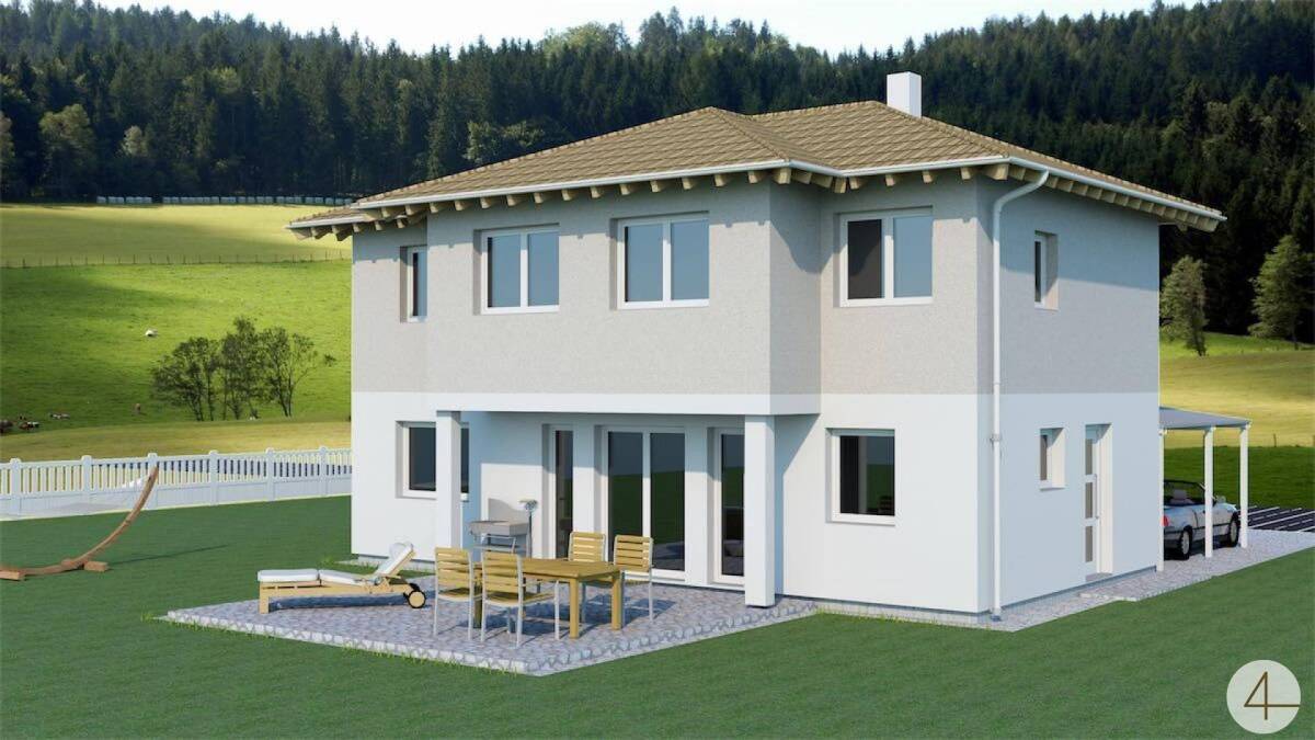 Haus ALICE 110Das elegante, zeitlose Design trifft wie Amors Pfeil mitten ins Herz. Auch die inneren Werte können sich sehen lassen: Bodentiefe Fenster und ein offener Wohn-Essbereich schaffen ein helles, lichtdurchflutetes Ambiente für die ganze Familie.Eckpunkte:3 SchlafzimmerZusätzliches Büro/Gästezimmer im Erdgeschoss ohne AufpreisOffener Wohnen-Esse-BereichHighlights• Hoch wärmegedämmte Holzrahmenbauweise aus Konstruktionsvollholz inkl. Installationsebene, U-Wert = 0,11 W/m²K, HWB 39, fGEE 0,47• Jede individuelle Planung ist möglich• auf Wunsch auch mit Keller• Komplette Heizungsanlage als Luft-Wasser-Wärmepumpe mit Warmwasserspeicher und Fußbodenheizung• Witterungsgeführte Regelstation mit Zeitschaltuhr• Komplette Sanitärausstattung inklusive Sanitärobjekte, wandhängende WCs und Waschmaschinenanschluss• Einhebel Mischbatterien• Bodengleiche Dusche mit Duschabtrennung• Weiße energiesparende Kunststofffenster und Kunststoffhaustüre mit Einhand-Dreh-Kippbeschläge, 3-fach Isolierverglasung (Ug-Wert = 0,6 Wm²K)• Hochwertige AusstattungPreis belagsfertig: 158.000.-Preis schlüsselfertig: 209.000.-Preis Bodenplatte: 27.920.-Grunstück-986 m²: 45.000.-belagsfertig - incl.Grundstück und Bodenplatte: € 230.920.-