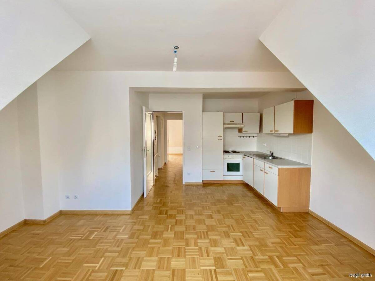 Sehr helle, frisch sanierte 2 Zimmer Wohnung im Dachgeschoß mit südseitigen Balkon, Hauszentralheizung, Keller und Fahrstuhl verfügbar. Wird auf 5 Jahre befristet vermietet. Miete netto EUR 450,00 BK netto inkl. Heizung EUR 162,07 10% USt EUR 57,11 20% USt (Heizung) EUR 8,20 Brutto EUR 677,38