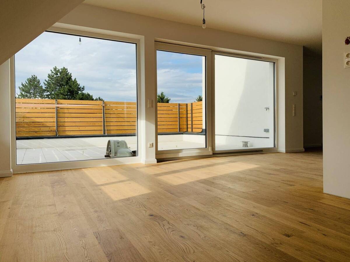Bei diesem in 2020 errichteten Wohnbauprojekt, gelangt nun auch das Sahnestück - und zwar das Penthouse zum Verkauf, welches kurz vor seiner Fertigstellung steht.Bei der Wohnhausanlage entstanden 6x Garten-Maisonettewohnungen sowie 2x Dachgeschoss Wohnungen, auf einem Baurechtsgrund der Stadt Wien. (monatliche Kosten lediglich ca. 12 Euro!!)Das Penthouse befindet sich in Bauteil B und befindet sich somit im hinteren Gartentrakt des Hauses. Die Wohnung hat 3 Zimmer und misst ca. 100m2 zzgl. ca. 19m2 Dachterrasse mit traumhafter Aussicht und Sichtschutz.Die Wohnung ist über einen separaten Eingang erreichbar und hat keinen Lift. Der Wohnung ist ein KFZ-Stellplatz am Grundstück zugeordnet, welcher im Preis bereits inkludiert ist.Bei der Gestaltung wurde ein Augenmerk auf detaillierte Verarbeitung der hohen Qualität der Materialien wie auch ästhetische Kennzeichen eines Wohlfühlwohnerlebnisses gelegt. Die Ausführung erfolgt in schlüsselfertigen Zustand. Die Wohnung bietet aufgrund ihrer Ausrichtung und der maximal eingesetzten Glasflächen einen optimalen Lichteinfall.Eine energieeffiziente Gebäudehülle sowie der Einsatz von einer Luft-Wärmepumpe für Heizen und Warmwasseraufbereitung in Kombination mit einer Fußbodenheizung schont die Umwelt, sorgt für angenehmes Raumklima und spart Betriebskosten. Außenliegende und elektrisch gesteuerte Verschattungseinrichtungen in Kombination mit einer Klimaanlage in allen Wohnräumen schützen im Sommer vor Überhitzung.Optimal gelegen in der Nähe vom Badeteich Hirschstetten, beziehen Sie hier praktisch ein Naherholungsgebiet gleich in der Nachbarschaft. Gleichzeitig sind alle wichtigen Bedürfnisse des Alltags hier selbstverständlich spielend leicht zu erreichen.Die Donaustadt vereint die Annehmlichkeiten einer urbanen Metropole mit den Rückzugsmöglichkeiten der umliegenden Natur. Wenn Sie sich entspannen wollen, finden Sie hier genauso Gelegenheit dazu, wie die Möglichkeit sämtliche Besorgungen des Alltags zu erledigen. Darüber hinaus haben Sie mit dem Gewerbepark Stadlau ein Einkaufsparadies von wahrlich gigantischem Ausmaße mit Shops, die keine Wünsche offen lassen, nur einen Katzensprung entfernt.Die S2 lässt die Heimfahrt im Auto zum Kinderspiel werden, eine gute öffentliche Verkehrsanbindung sorgt mit mehreren Linien dafür, dass man auch ohne Führerschein ans Ziel kommt.Öffis: Autobusse 85A und 24A fußläufig in 4 Minuten erreichbar.- Highlights -• Penthouse mit Dachterrasse• Aussicht• Klimaanlage• Videogegensprechanlage• eigener KFZ-Stellplatz, 2. Stellplatz gegen Aufpreis Möglich• Luftwärmepumpe der Marke Fujitsu• Außenliegender Sonnenschutz mit digitaler Steuerung• mitten im Grünen• Ziegel-Massiv Bauweise• Eichenparkettboden• hochwertige Badezimmerausstattung mit Dusche und BadewanneBei Interesse, weiteren Fragen oder dem Wunsch nach einer Besichtigung, stehen wir Ihnen gerne und jederzeit zur Verfügung.Das Expose mit Detailauskünften zu dieser Immobilie erhalten Sie auf Anfrage!Alle Angaben wurden uns direkt vom Eigentümer zur Verfügung gestellt, eine Haftung für deren Richtig- oder Vollständigkeit können wir daher nicht übernehmen.Die Firma GR-Partners Immobilien ist kraft bestehenden Geschäftsgebrauch als Doppelmakler tätig (§ 5 (3) Maklergesetz) und vertritt in dieser Position sowohl die Interessen des Abgebers als auch der Interessenten mit höchster Sorgfalt. Wir weisen darauf hin, dass zwischen dem Vermittler und dem Auftraggeber ein wirtschaftliches Naheverhältnis besteht.Wir weisen darauf hin, dass zwischen dem Vermittler und dem Auftraggeber ein wirtschaftliches Naheverhältnis besteht. Der Vermittler ist als Doppelmakler tätig.Infrastruktur / EntfernungenGesundheit Arzt <2.000m Apotheke <1.000m Krankenhaus <5.000m Klinik <7.000m Kinder & Schulen Schule <1.000m Kindergarten <1.500m Universität <4.000m Höhere Schule <3.500m Nahversorgung Supermarkt <500m Bäckerei <2.500m Einkaufszentrum <2.500m Sonstige Bank <2.500m Geldautomat <2.500m Post <2.500m Polizei <3.000m Verkehr Bus <500m U-Bahn <2.500m Straßenbahn <2.000m Bahnhof <2.500m Autobahnanschluss <1.500m Angaben Entfernung Luftlinie / Quelle: OpenStreetMap