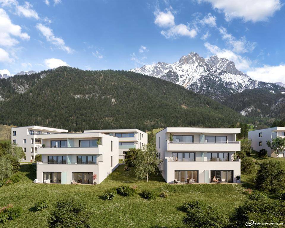 "Wohnen am Gründbichl" in Saalfelden/Wiesing - Eigentum mit Weitblick! Beeindruckende Fernblicke zu den Leoganger Steinbergen, dem Biberg und das Steinerne Meer im Westen, das Hochkönig Massiv und die Dientener Berge im Osten verleihen der Wohnanlage mit insgesamt 38 Wohneinheiten einen einzigartigen Charme. Das Wohnangebot umfasst insgesamt 7 Reihenhäuser (1x3 Häuser in einer Reihe; 2x2 Häuser in einer Reihe) und 5 Mehrfamilienwohnhäuser, 4 davon mit je 6 Wohneinheiten und eines mit 7 Wohneinheiten. Ein komfortables Wohnen wird durch Barrierefreiheit in allen Wohneinheiten, den Personenaufzug von der obersten Etage bis in die Tiefgarage in den Mehrparteienhäusern, persönliche Abstellräume / Abteile, Allgemeinräume sowie einen schön angelegten Kinderspielplatz und Außenanlagen gewährleistet. Moderne ökologische Bauweise und die Verarbeitung qualitativ hochwertiger Materialien bei der Innenausstattung sind bei uns seit über 60 Jahren ein Garant für ein zukunftsträchtiges und langlebiges Eigenheim. Einen großen Pluspunkt für die Finanzierung mit möglicher Wohnbauförderung stellen auch die 18 Energiepunkte dar. BN 6830 HWB 27, fGEE 0,55 Allgemeine Daten Planung:Wohnbau-Genossenschaft Bergland 5700 Zell am See Baubeginn / 3. Bauetappe: Frühjahr 2020 Fertigstellung:Herbst 2021 Einheiten: 1 Mehrparteienhaus mit 6 Wohneinheiten und 1 Mehrparteienhaus mit 7 Wohneinheiten wischen 55m² und 101m² Heizung: Fernwärme aus Heizwerk; Fußbodenheizung ; Photovoltaik-Anlage Sonstiges:Lift, Terrasse mit Gartenanteil, Balkon, Loggia, Tiefgarage, Abstellräume im UG, Allgemeinräume, fix zugeordneter TG-Stellplatz Top 4 im 1.OG | Sonnige 3-Raum Wohnung Eingang: 9,92m² WC: 1,54m² AR: 2,43m² Bad: 7,34m² Kinderzimmer: 9,92m² Schlafzimmer: 13,07m² Kochen/Essen/Wohnen: 30,81m² Gesamt: 75,03m² Balkon: 13,62m² Keller: 5,14m² Kaufpreis Wohnung: Euro 339.473,00 Kaufpreis TG-Stellplatz : Euro 22.000,00 Wir freuen uns auf Ihre Terminvereinbarung für ein Informations/Verkaufsgespräch- Regine Schreder (06542)5460 32