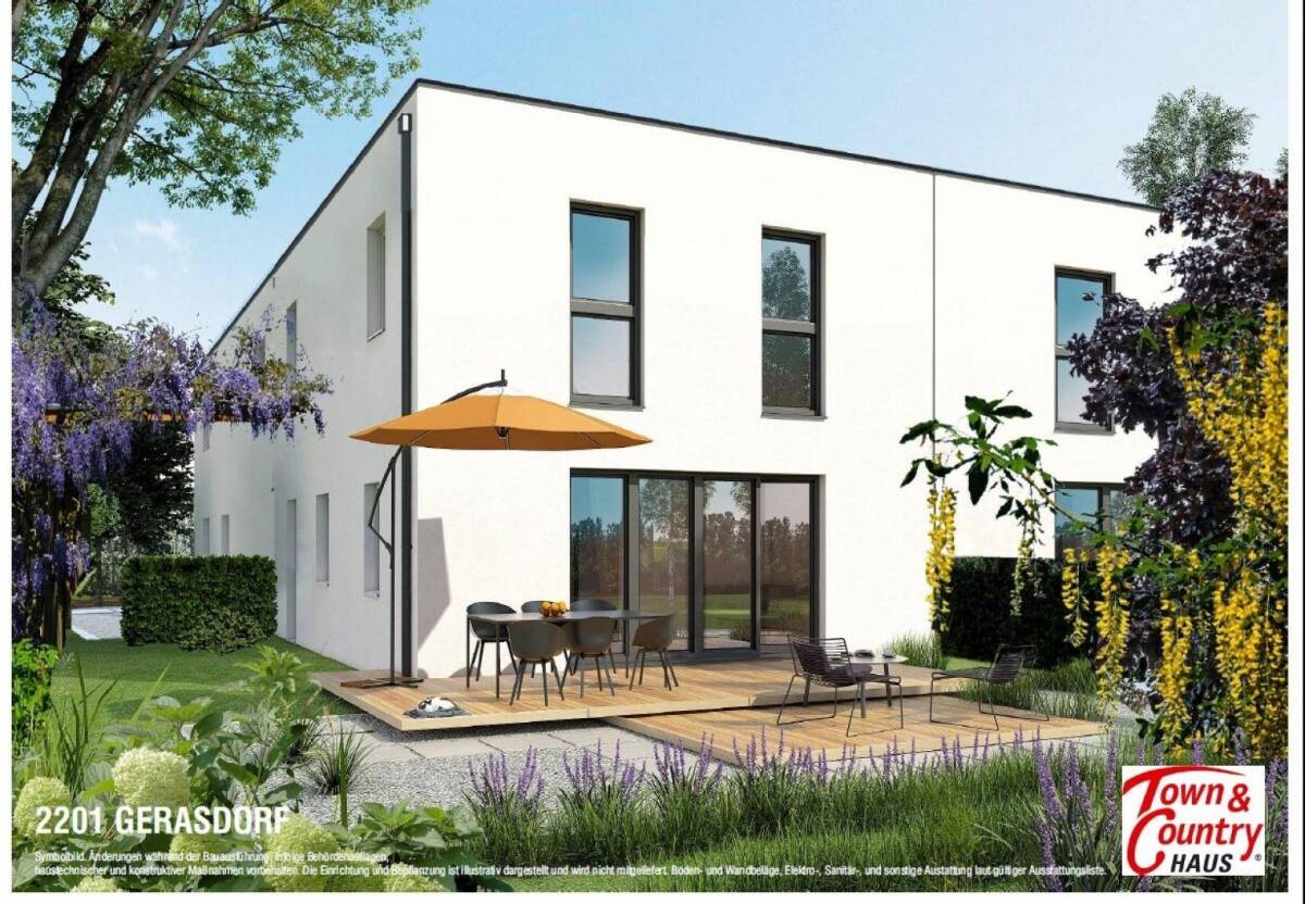 Wir errichten ein traumhaftes, modernes Einfamilien-Doppelhaus in perfekter Ruhelage an der Grenze zu Wien. Das Grundstück befindet sich in einer sehr schönen Einfamilienhaussiedlung mit tollen Villen. Unverbauter Ausblick auf den Bisamberg.Bus nach Wien fußläufig erreichbar. Diverse Einkaufsmöglichkeiten sind in unmittelbarer Umgebung.Die perfekte ruhige und sonnige Lage mit einem herrlichen Ausblick auf den Bisamberg, die Nähe zu Stammersdorf , ein Massivhaus von Town & Country mit unseren Hausbau-Schutzbriefen für sicheres Bauen und der attraktive Kaufpreis machen das Projekt zu einer wirklichen Gelegenheit, um die man Sie beneiden wird.Überzeugen Sie sich selbst bei einem unverbindlichen Termin mit uns!!Massives Einfamiliendoppelhaus in Niedrigenergiebauweise von Town & Country mit 110m² Nutzfläche.200m² GrundstücksanteilModerner Grundriss auf 2 Geschossen mit Flachdach.Ausgestattet mit modernster Gasheizung mit BrennwerttechnologieFußbodenheizung im gesamten Haus2 Autoabstellplätze, Zuleitungen, Wege und die Straßeneinfriedungsind ebenfalls enthalten. (lt. Leistungsbeschreibung)Erdgeschossoffene Kücheheller Wohnraum mit schöner AussichtWCHauswirtschaftsraumObergeschoss3 Schlafzimmergroße KinderzimmerBadezimmer mit WC, Badewanne und DuscheInfrastruktur / EntfernungenGesundheit Arzt <4.000m Apotheke <3.000m Krankenhaus <3.500m Klinik <8.000m Kinder & Schulen Schule <3.000m Kindergarten <3.000m Universität <4.000m Höhere Schule <7.500m Nahversorgung Supermarkt <1.000m Bäckerei <1.000m Einkaufszentrum <3.500m Sonstige Bank <3.000m Geldautomat <3.000m Post <4.000m Polizei <3.000m Verkehr Bus <500m Straßenbahn <3.000m U-Bahn <5.000m Bahnhof <4.500m Autobahnanschluss <3.000m Angaben Entfernung Luftlinie / Quelle: OpenStreetMap