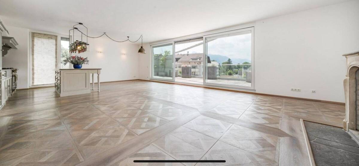 Die besonders exklusive Penthouse Maisonette liegt in einem Villenviertel direkt am Fuße des Gaisbergs, dem beliebtesten Naherholungsgebiet der Salzburger. Beste Busanbindung an die Stadt, gleich um die Ecke. Die Wohnung besticht durch eine moderne Architektur harmonisch verein mit einer sehr geschmackvollen Einrichtung mit edelsten Materialien. Smarter franz. Lifestyle, der höchsten Ansprüchen gerecht wird. Wie Wohnfläche verteilt sich auf 2 Etagen (1.Stock und DG). Der Lift führt von der Tiefgarage bis in den 1.Stock.1. StockDieleRepräsentativer Wohnsalon (ca. 59m²) mit franz. Kamin und bodentiefen Glasschiebtüren auf die Sonnenterrasseexklusive, offene Küche2 SchlafzimmerBad mit Dusche, WC, Handtuchtrockner und FensterArbeitsraum mit Waschmaschinen/und Trockneranschluss 2.(=ob.Stock)offenes Studio (ca. 25m²) zum Chillen und Fernsehen für die ganze FamilieMasterbedroom (ca. 34m²)Exklusives Bad mit Badewanne, Dusche, WC, Bidet, Doppelwaschbecken und FensterErwähnenswert: Die Wohnung ist bis spätestens Ende 2021 von Teichmann Immobilien an einen Manager sehr gut vermietet, kann aber in diesem Jahr noch gekauft und der Mietvertrag übernommen werden. Besichtigungen können nach telefonischer Rücksprache mit Frau Teichmann vorgenommen werden.Das besondere "Highlight" ist die ca. 170m² große Dachterrasse, die fast rundum geht und sich in eine Süd/West und Nord/Ost/West Terrasse teilt. Hier können Sie nach Lust und Laune von früh bis abends Schatten/ und Sonnenplätze zum Relaxen und Essen finden oder mit Freunden große Feste feiern. Platz ist genug vorhanden.Infrastruktur / EntfernungenGesundheit Arzt <500m Apotheke <1.000m Krankenhaus <2.000m Klinik <3.000m Kinder & Schulen Schule <1.000m Kindergarten <1.000m Universität <2.500m Höhere Schule <3.000m Nahversorgung Supermarkt <1.000m Bäckerei <1.000m Einkaufszentrum <1.500m Sonstige Bank <1.000m Geldautomat <1.000m Post <1.500m Polizei <1.500m Verkehr Bus <500m Bahnhof <1.000m Autobahnanschluss <3.500m Flughafen <6.000m Angaben Entfernung Luftlinie / Quelle: OpenStreetMap