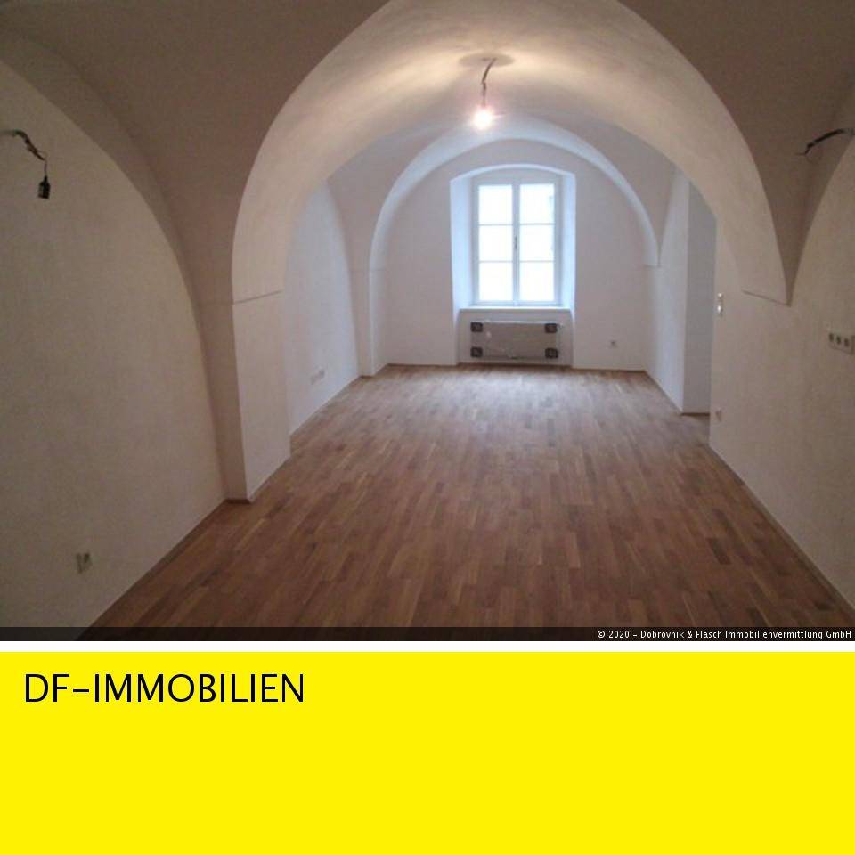 Außergewöhnlich Wohnen im historischen Bürgerhaus! Exklusive 2-Zimmer Eigentumswohnung in bester zentraler Wohnlage in einem neu sanierten, denkmalgeschützten Wohnhaus beim Hauptplatz! 50,04 m² Wohnfläche im Erdgeschoss mit 2 Zimmern, süd-seitig ausgerichtet. Vorraum, geräumiges Wohnzimmer (24,90 m²) mit Küchen-Anschlüssen (leer), Schlafzimmer, angrenzendes Badezimmer mit Wanne, separate Toilette. Das liebevoll generalsanierte Bürgerhaus stammt ca. aus dem Jahr 1770 (Kernbestand aus dem 16. Jahrhundert) , und präsentiert sich in topsaniertem Zustand. Die Technik wurde dem heutigen Standard angepasst und ermöglicht modernes und komfortables Wohnen. Generalsanierung abgeschlossen, Zentralheizung/Fußbodenheizung, TV/Internet-Hausanlage, hochwertige Doppelfenster, Parkett - und Steinböden. Sehr guter, neuer Zustand! Die Übernahme ist unmittelbar nach Kaufvertrag möglich. Energiedaten: HWB: 60,85 kWh/m².a, Klasse C. fGEE: 0,89, Klasse B. Kaufpreis: € 175.140.- Betriebskosten: Nur € 116,04 inklusive Heizung, TV/Internet und Wasser! Provision: 3 % des Kaufpreises zuzüglich 20 % USt. DF-Immobilien Wien, Herbert Flasch, 0676/ 30 574 30